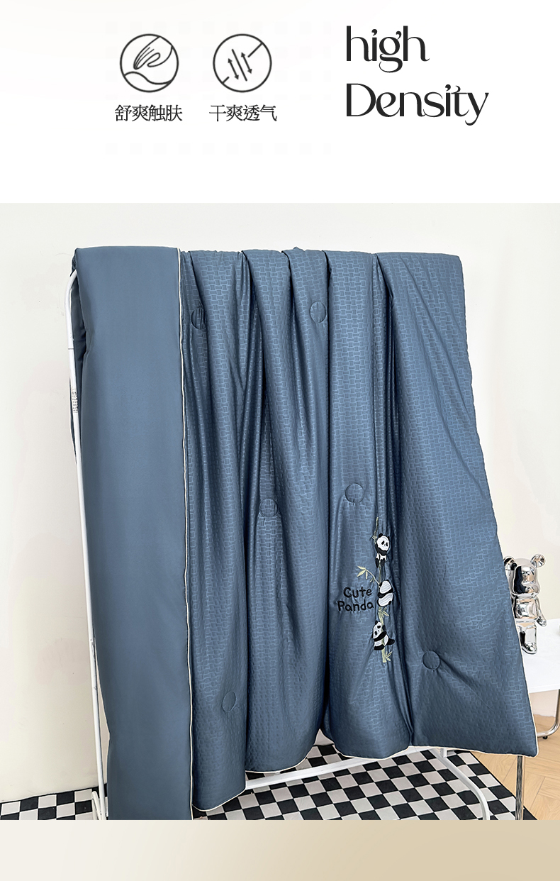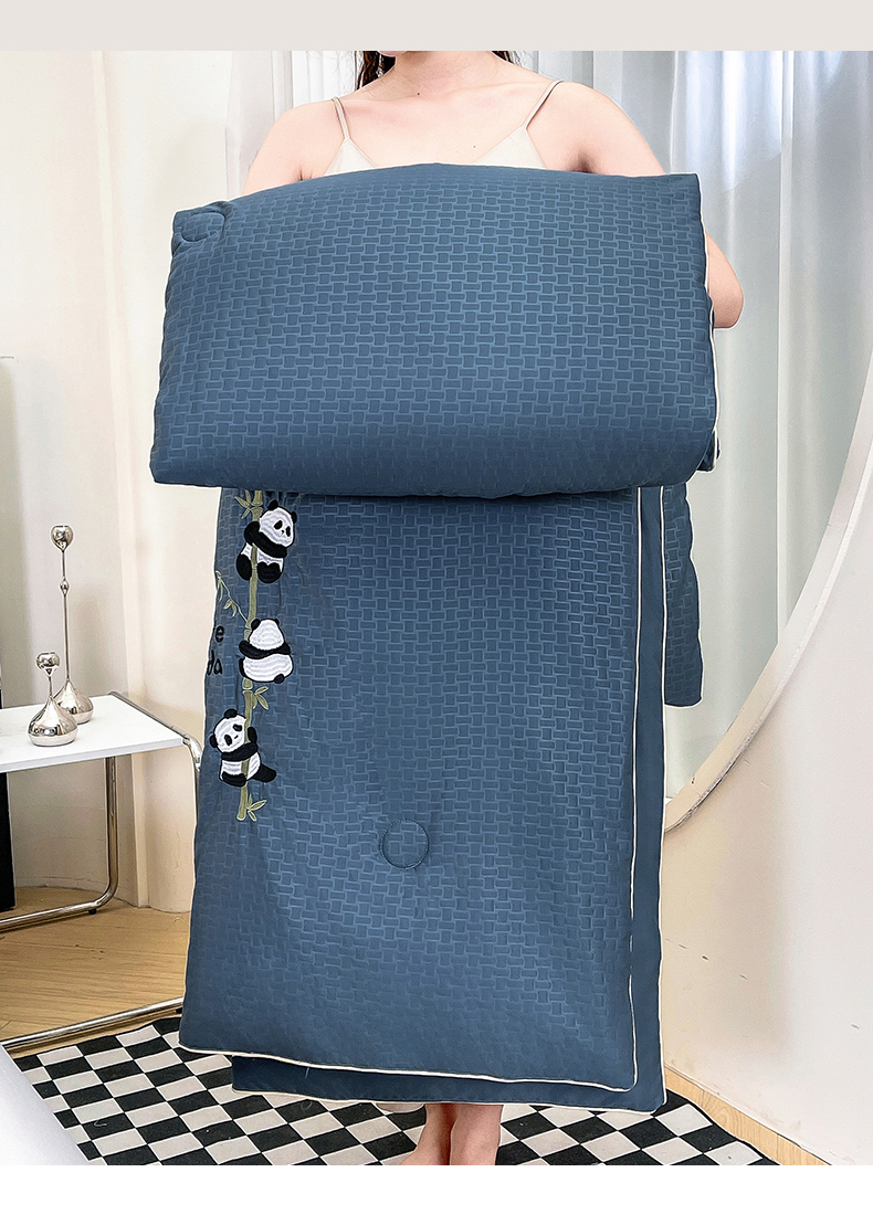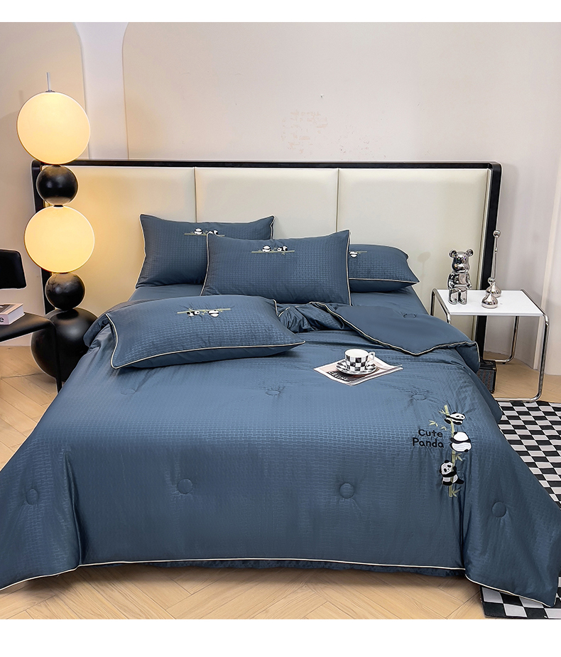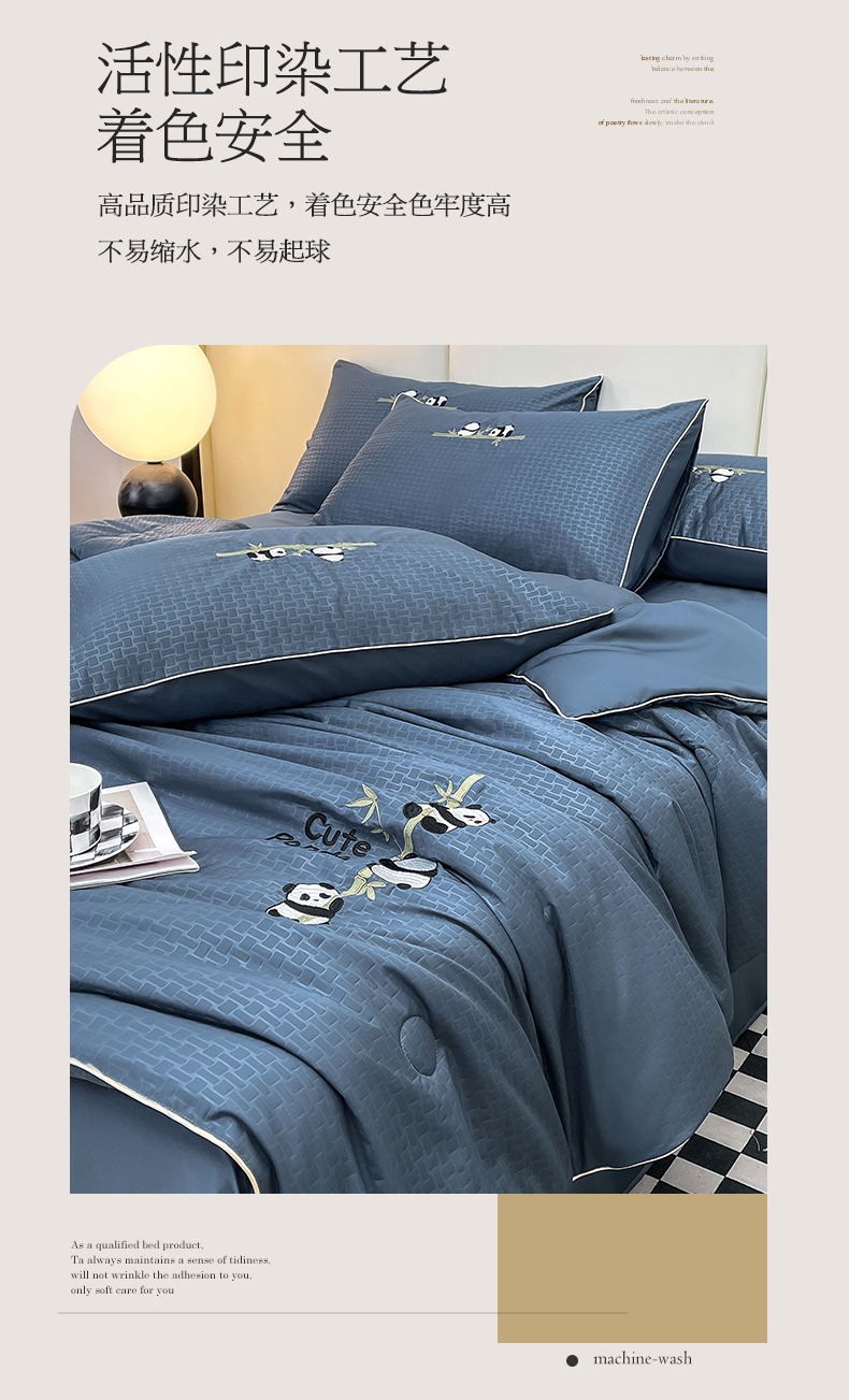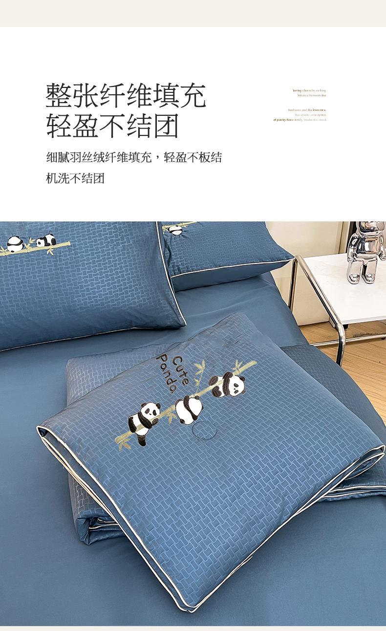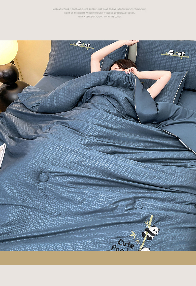 古吉梦 2024新款水洗真丝提花夏被-熊猫 星空蓝