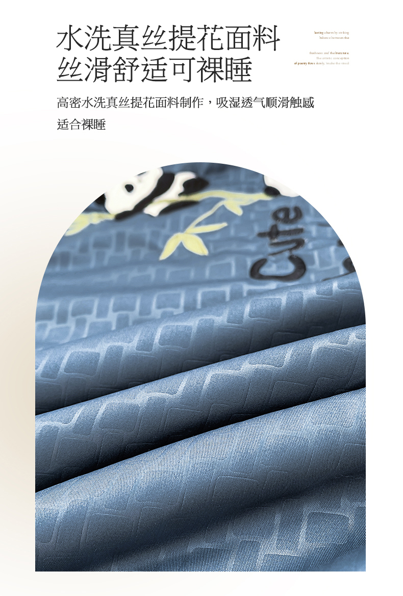商品名称:古吉梦 2024新款水洗真丝提花夏被-熊猫 星空蓝