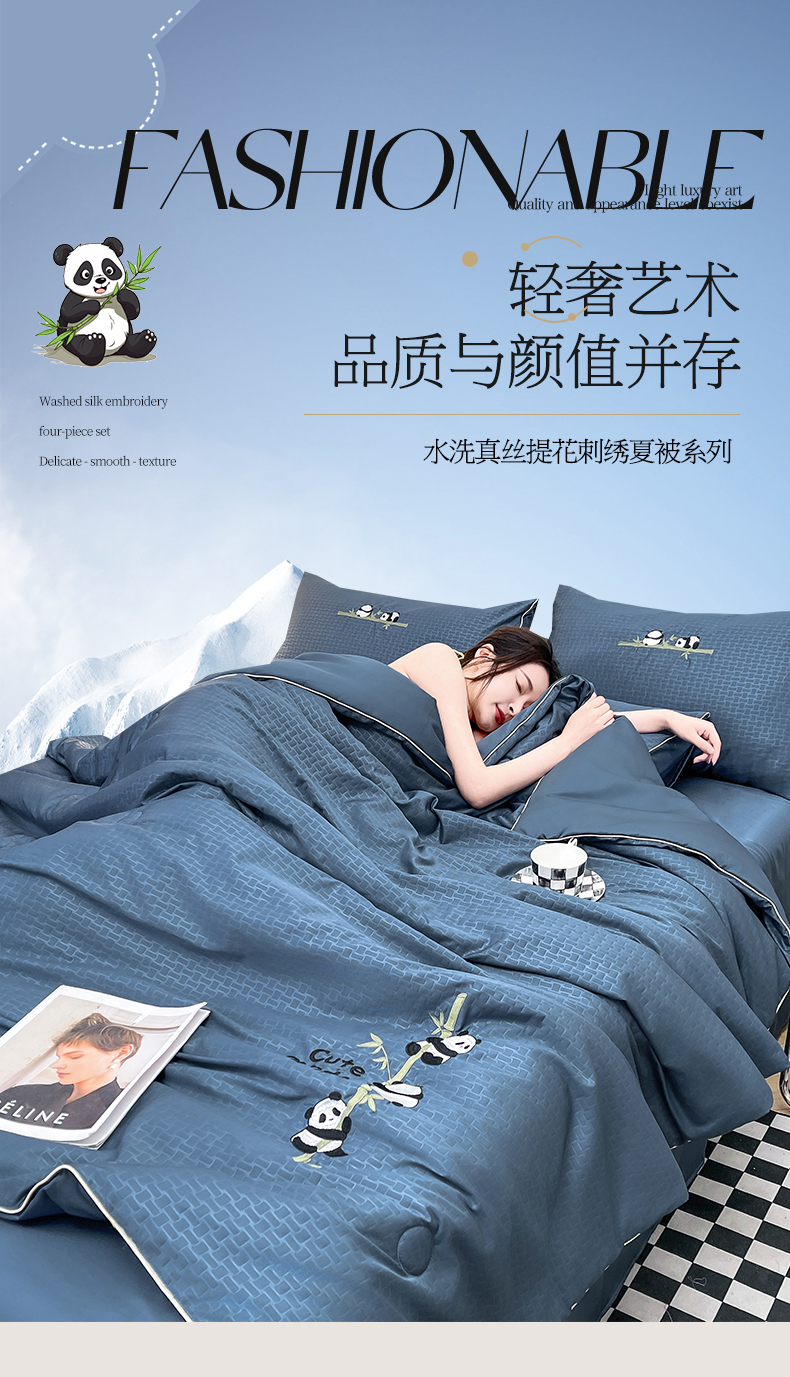 (总)古吉梦 2024新款水洗真丝提花夏被-熊猫,宾利蓝+奶茶,高级灰,海青+山灰,奶昔白+奶茶,浅豆沙+山灰,山灰+中灰,星空蓝
