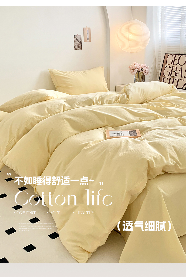 (总)水洗的故事 2025新款全棉色织水洗棉四件套,简序-粉,简序-灰,简序-蓝,简序-米黄,绿韵,樱织,云汐,紫韵粉格