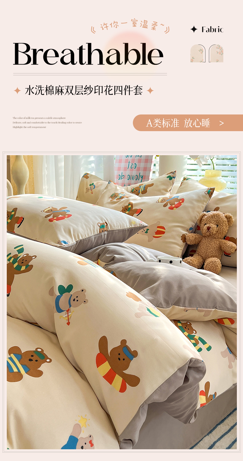 当前位置: 91家纺网 > 商品网购 > 床品套件 > 四件套 > 双层纱四件套 > 多品 2024新款水洗棉双层纱四件套 欢乐世界