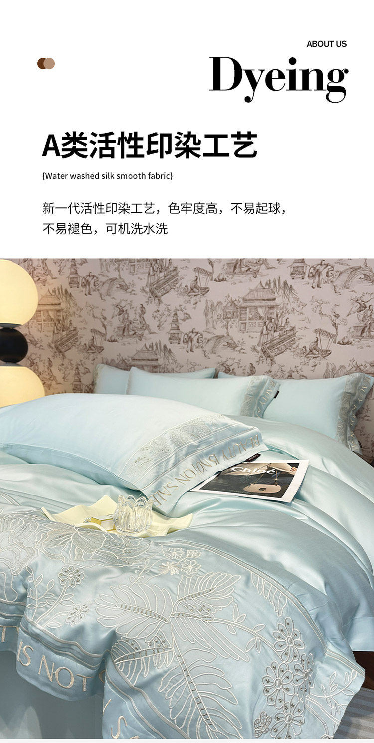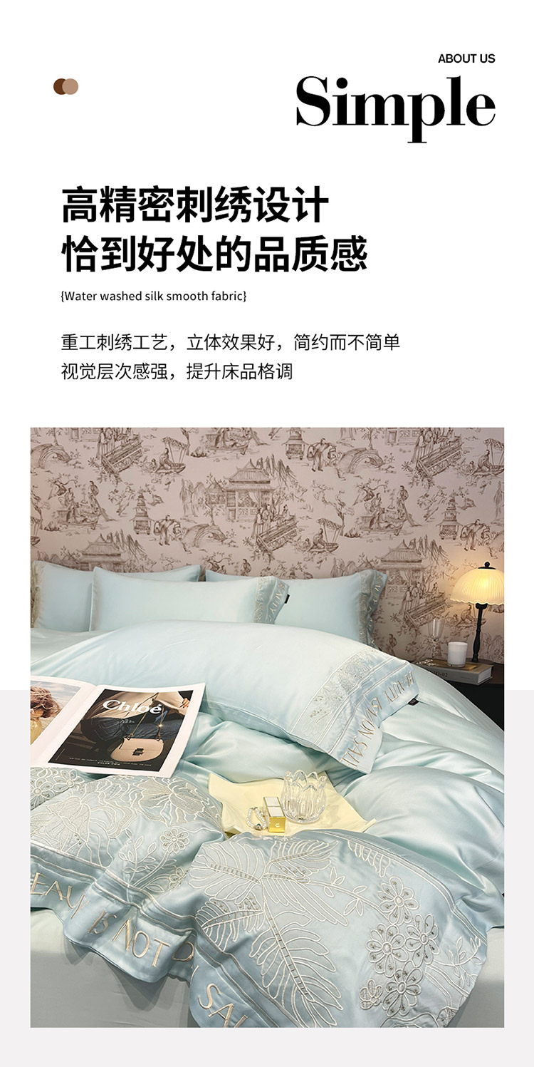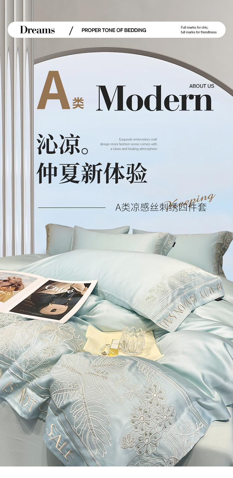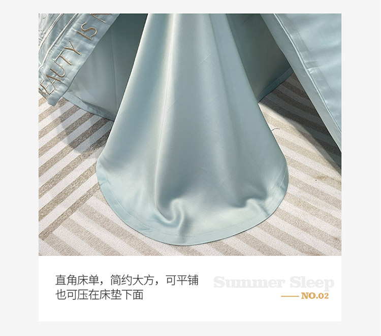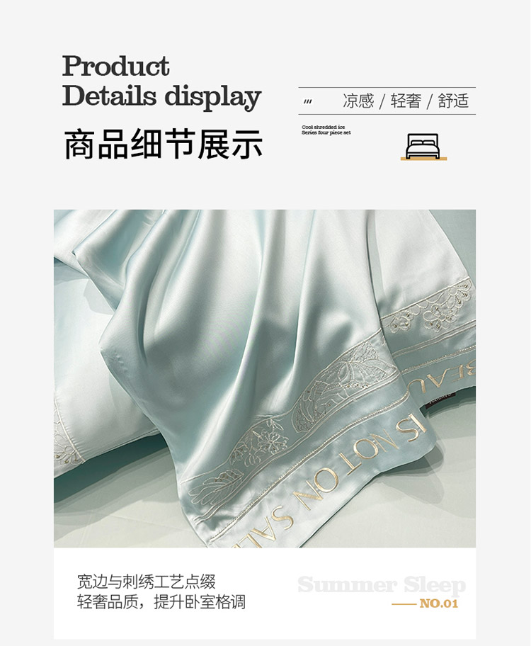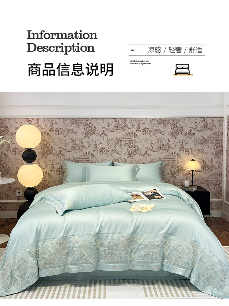 商品名称: 2024新款A类母婴级凉感真丝夏季裸睡丝滑床单床笠轻奢刺绣四件套 薄荷绿