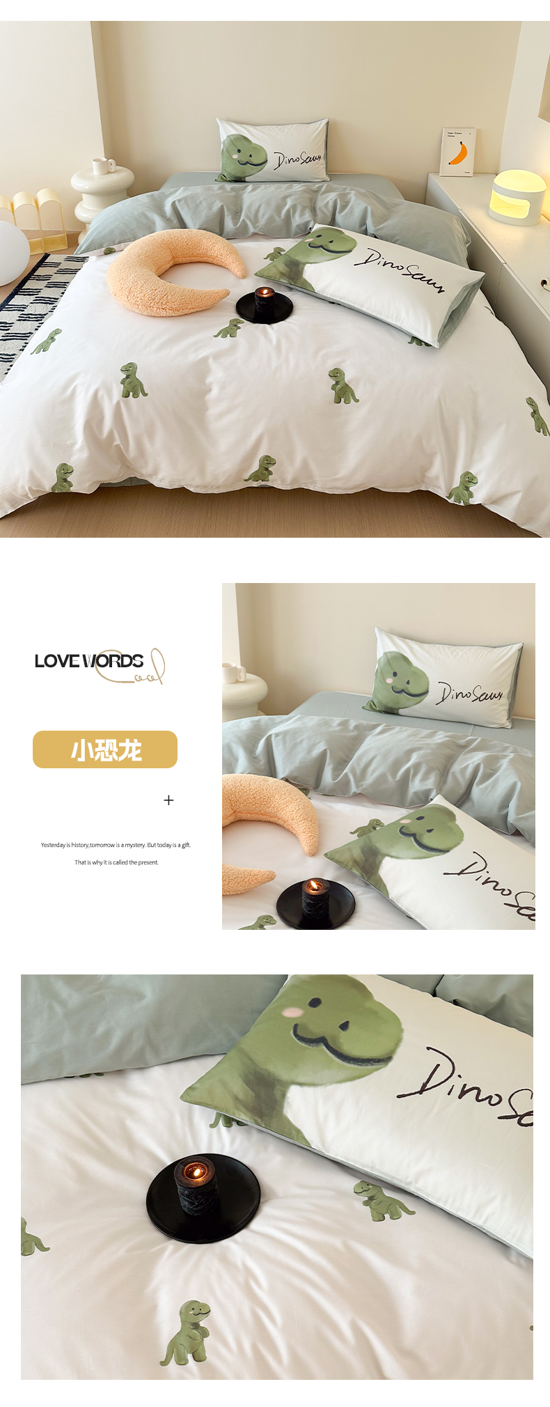 美乐迪家纺 2024ins韩风全棉四件套 小恐龙