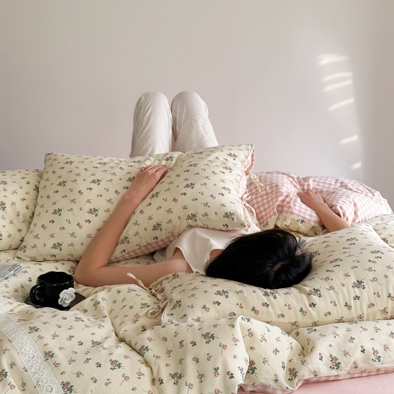 (总)旷野 2025新款空气层提花皱皱纱碎花边工艺款四件套-竹梦,竹梦
