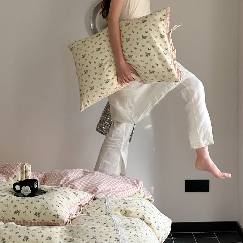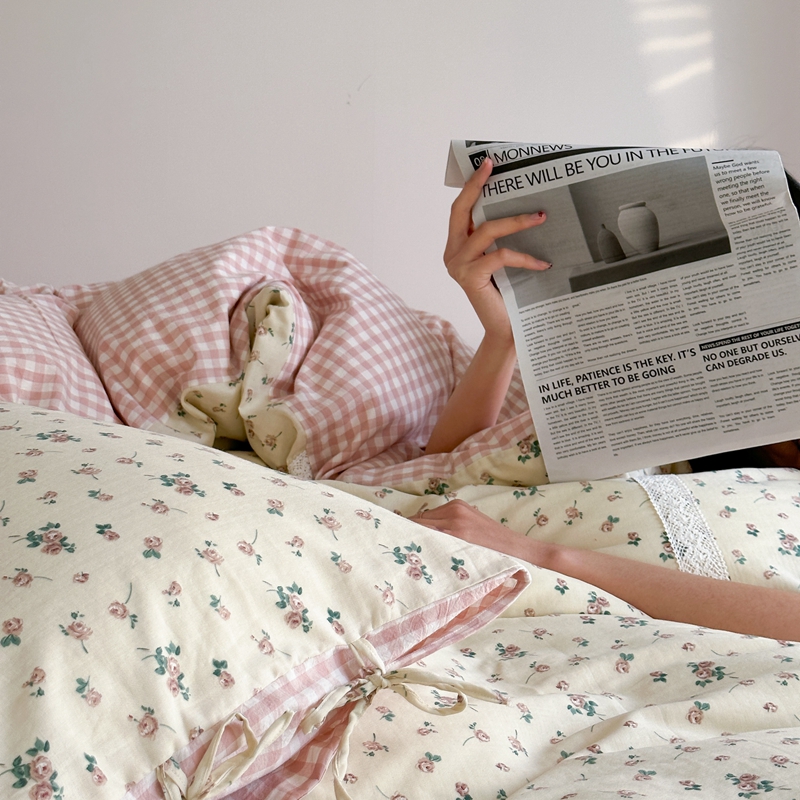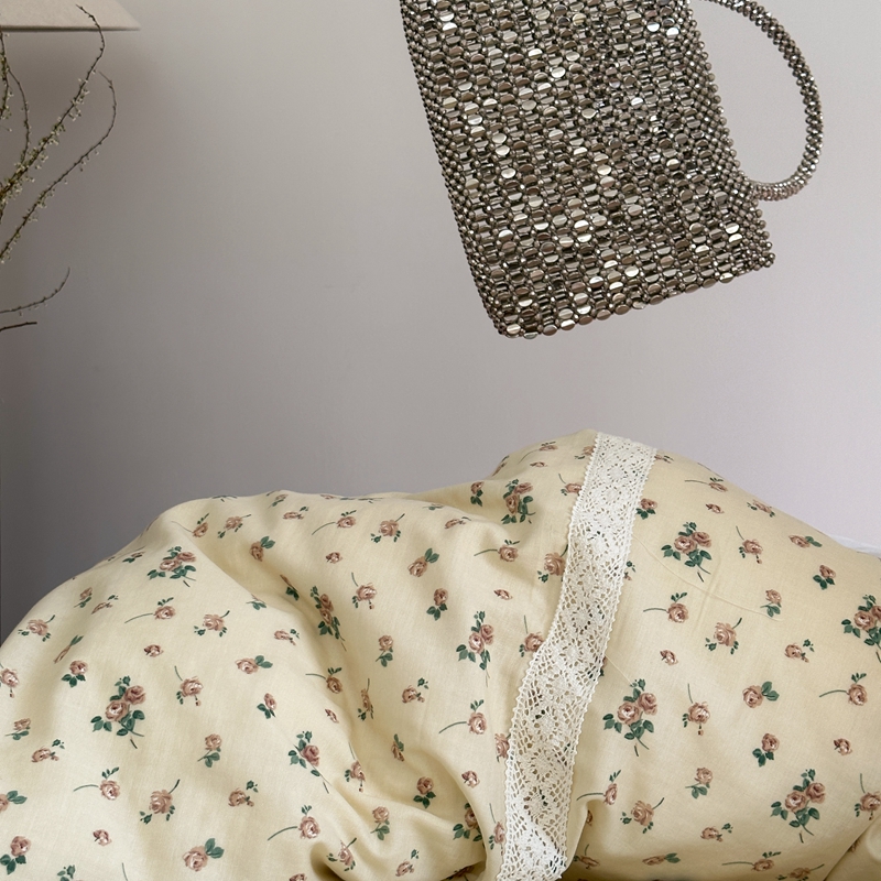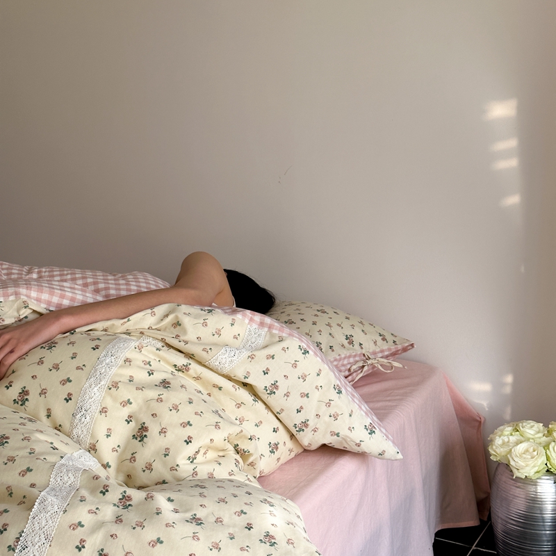 商品名称:旷野 2024双层纱碎花蕾丝拼接款四件套--柏林花事 柏林花事-粉