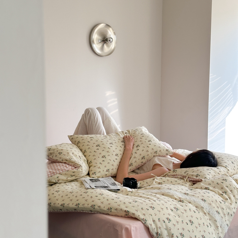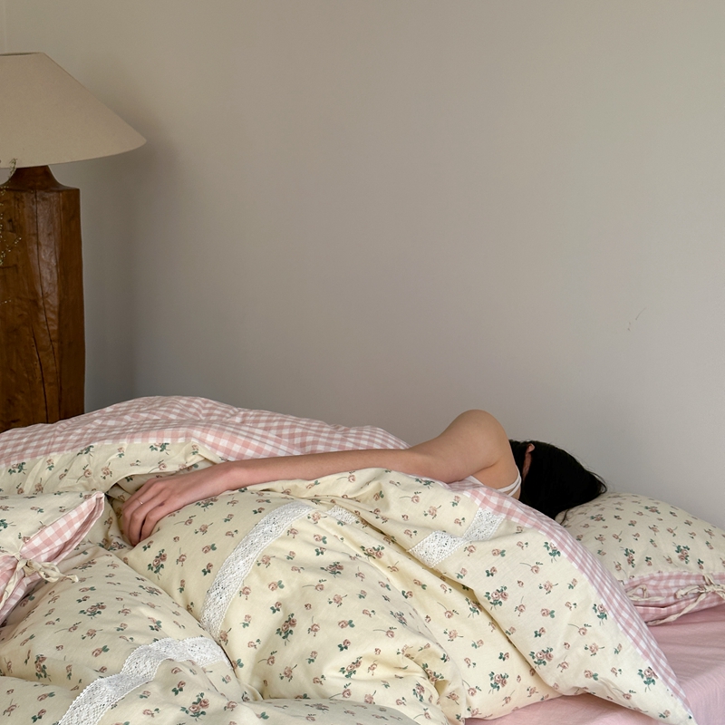 旷野 2024双层纱碎花蕾丝拼接款四件套--柏林花事 柏林花事-粉