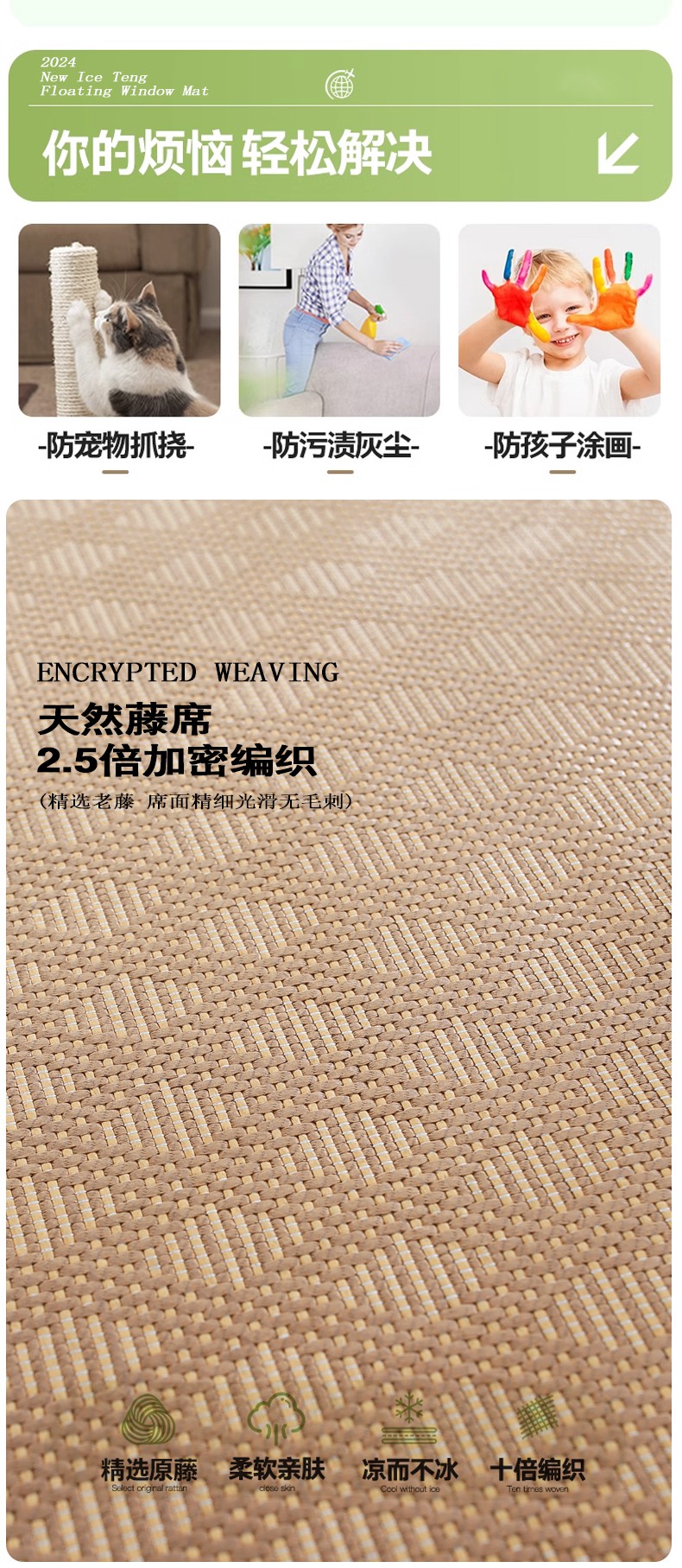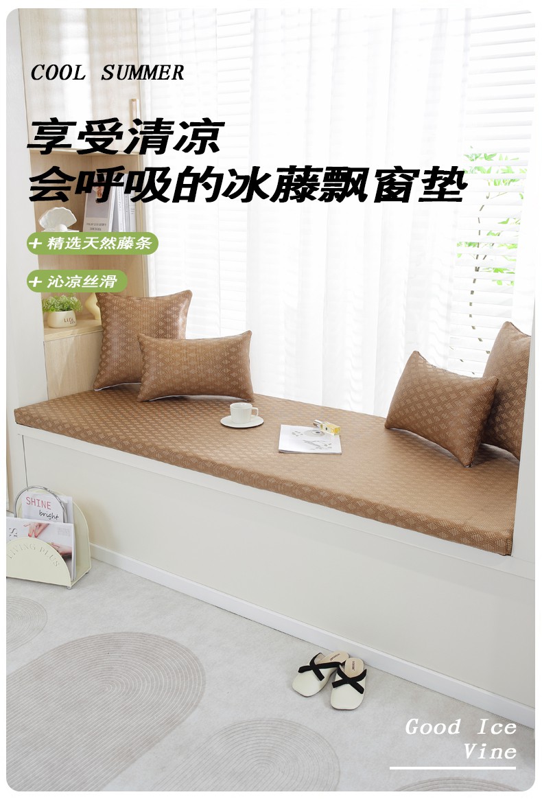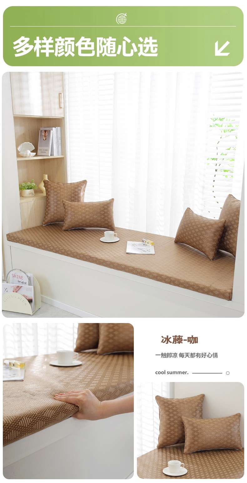 商品名称:共鸣沙发垫 2024新款 5cm厚50D冰丝冰藤飘窗垫 冰藤咖