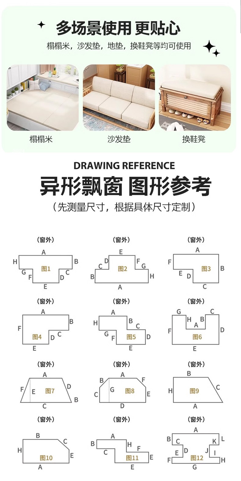 (总)共鸣沙发 2022新款冰丝麻飘窗垫,冰丝麻灰色,冰丝麻蓝色,冰丝麻绿色