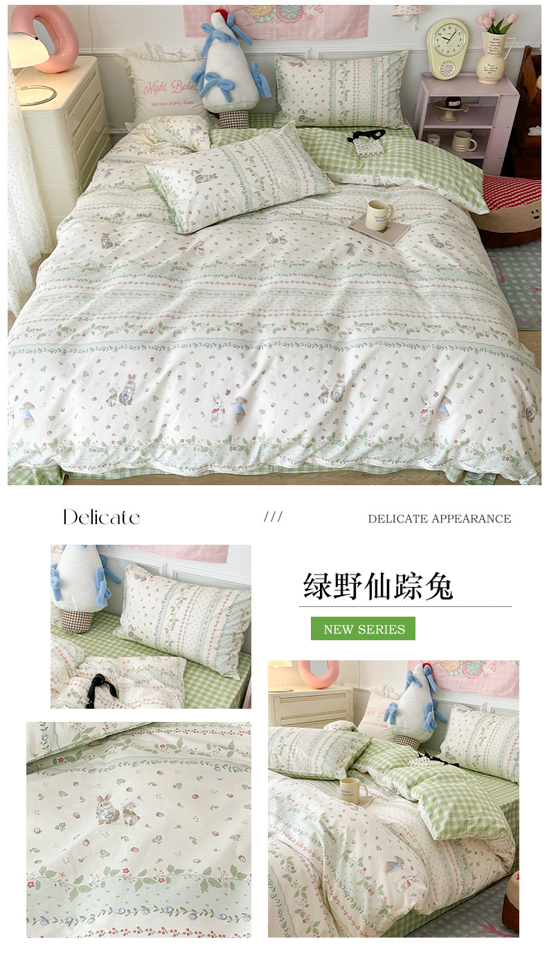 昔可家纺 2024开春新款全棉印花卡通四件套 绿野仙踪兔