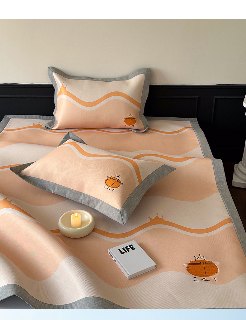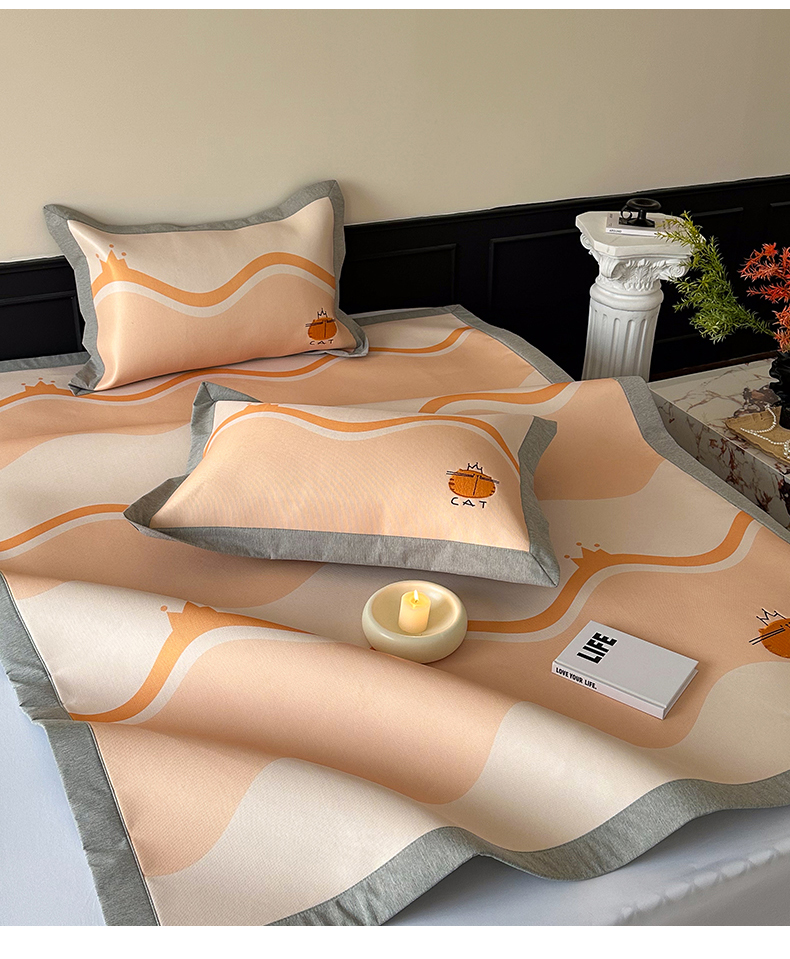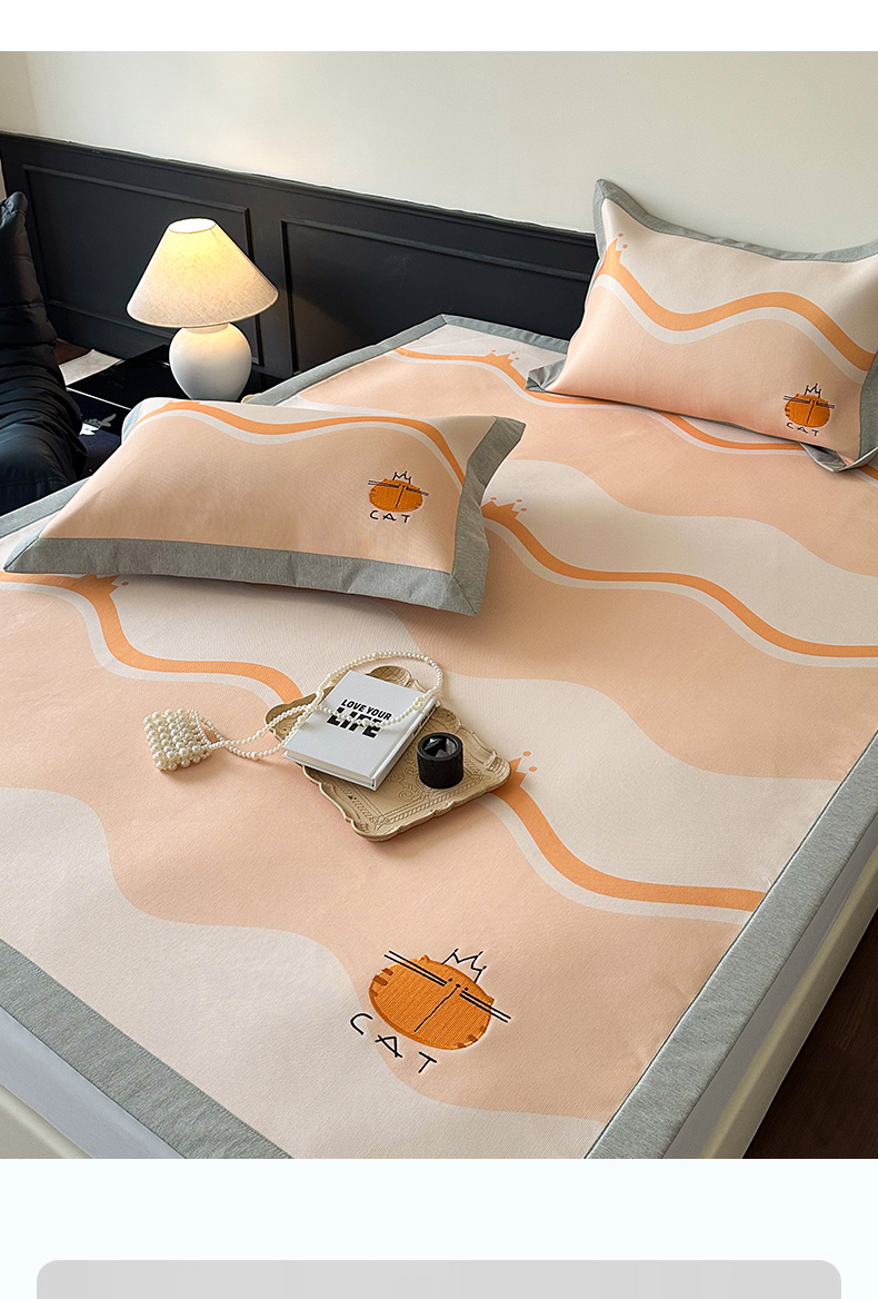 甜梦 2024新款母婴级7A抗菌养生冰藤席影棚1—平席款 皇冠橘子猫-平席款