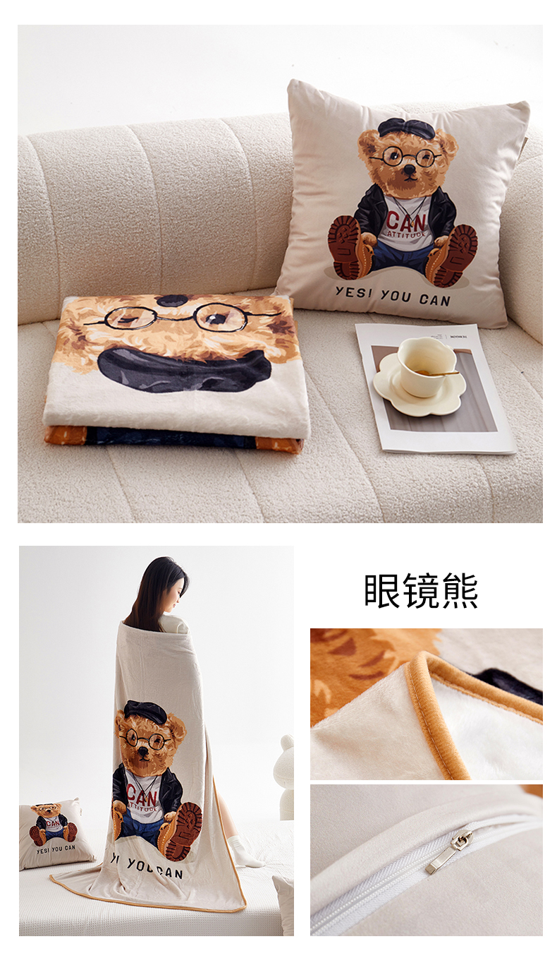 雷娜家居 2024新款多功能两用可拆卸抱枕毯 眼镜熊