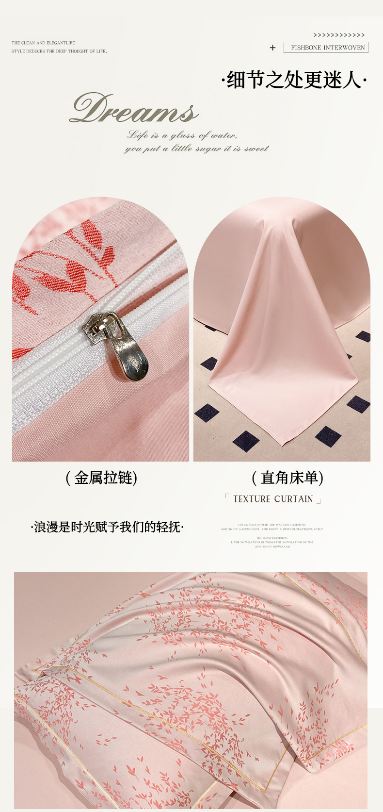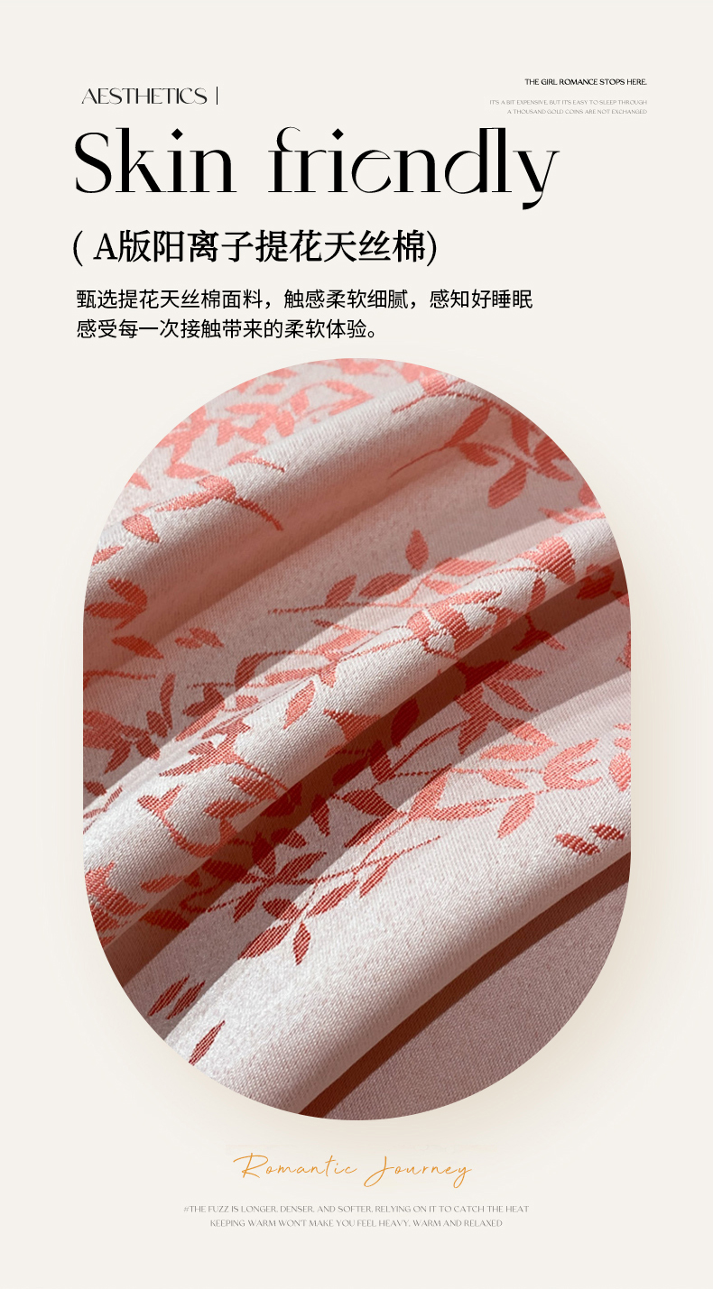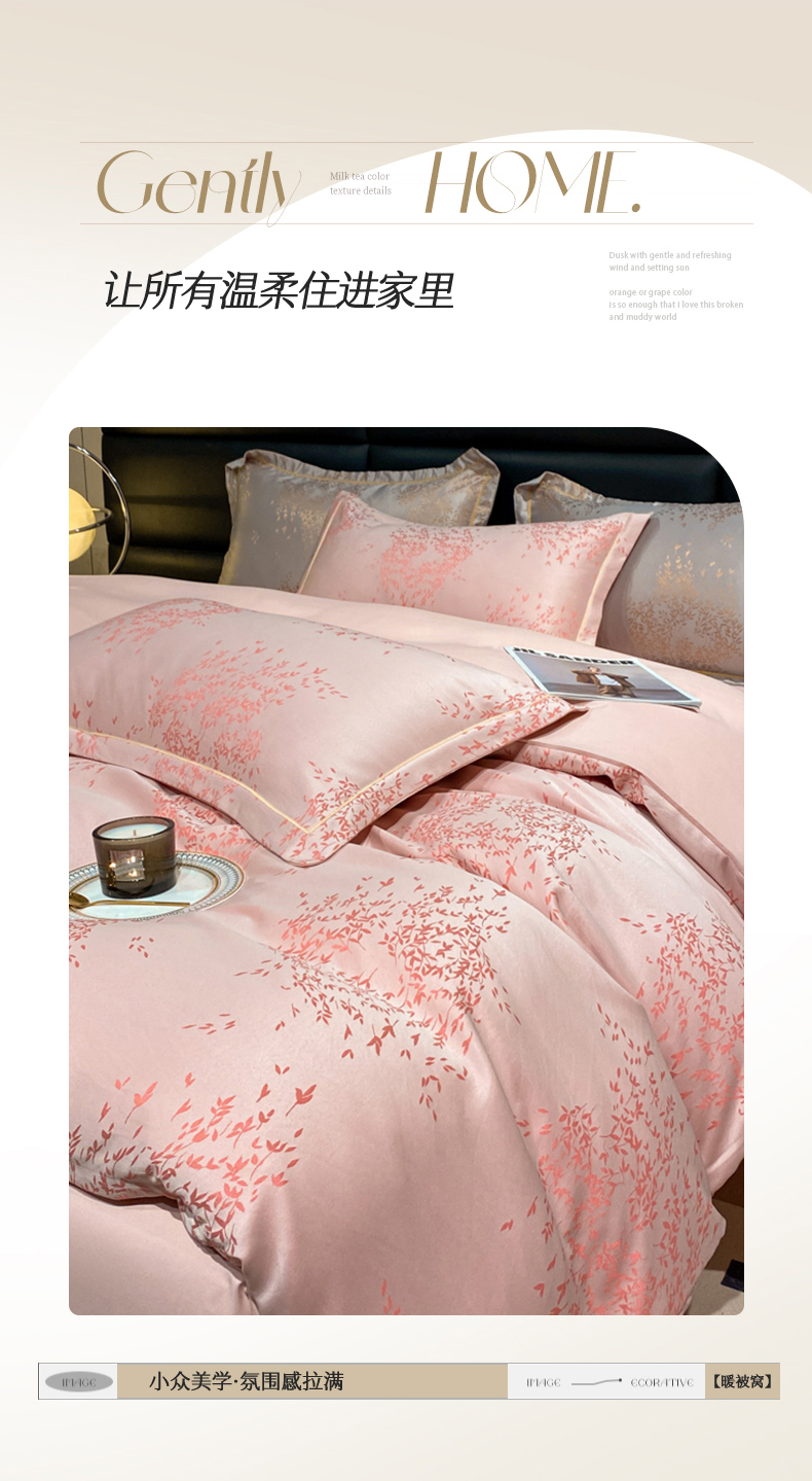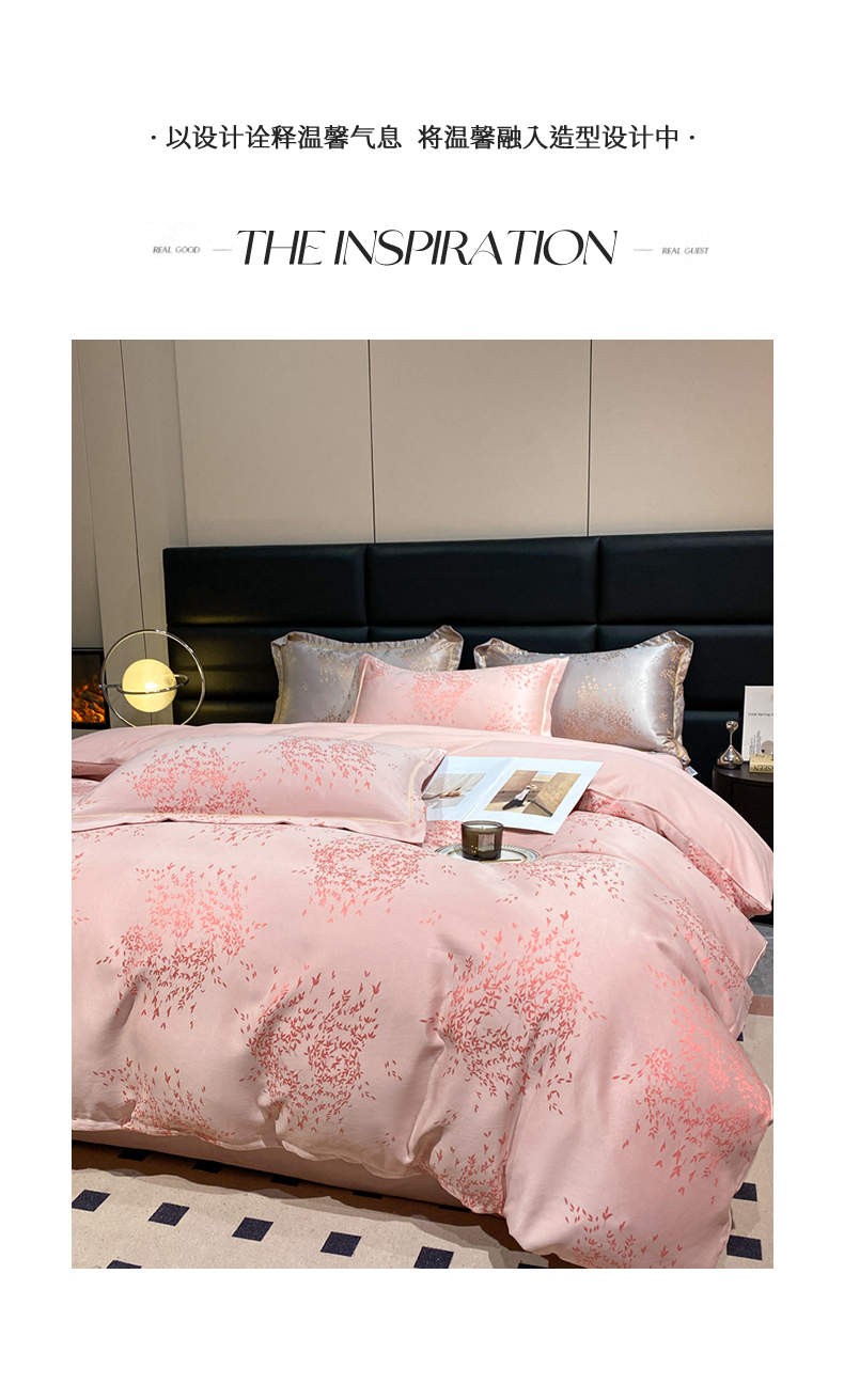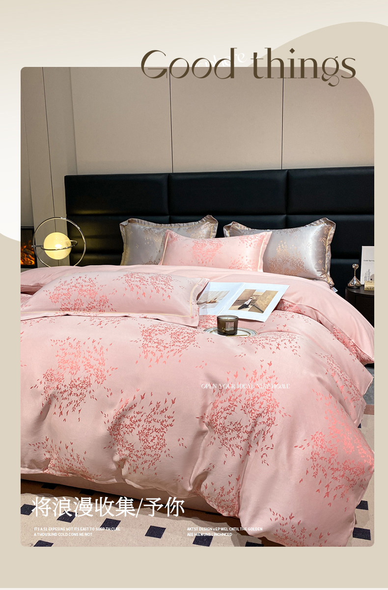商品名称:潮邦创意家居 2025新款阳离子提花天丝棉四件套-金枝玉叶(可配礼盒) 琳娜粉