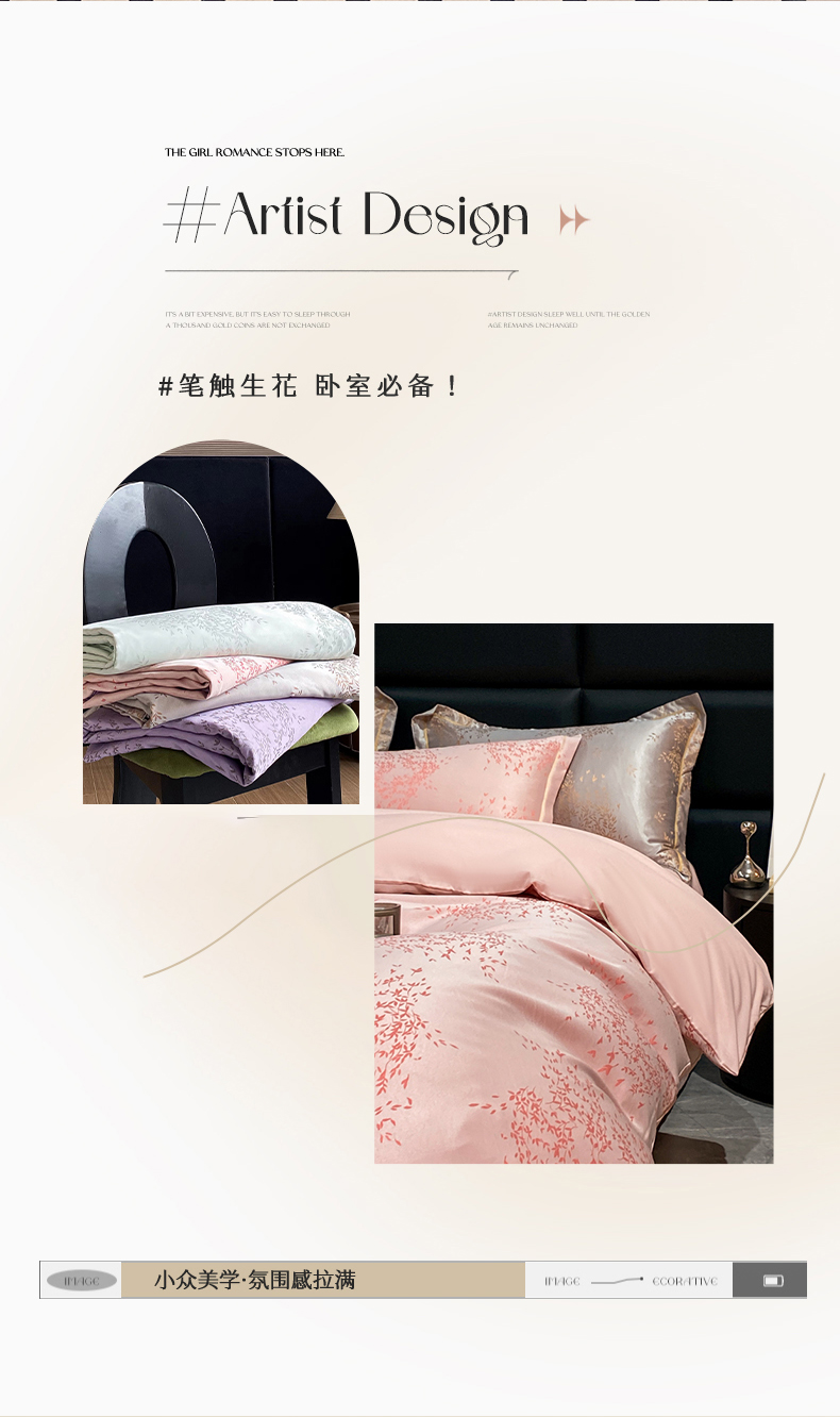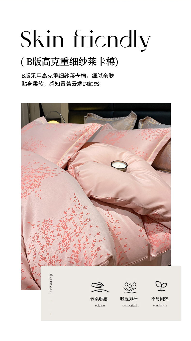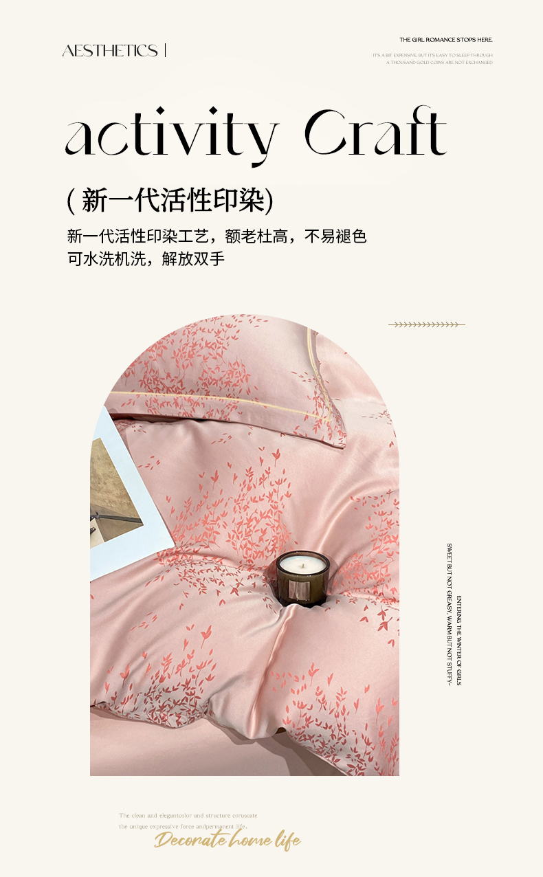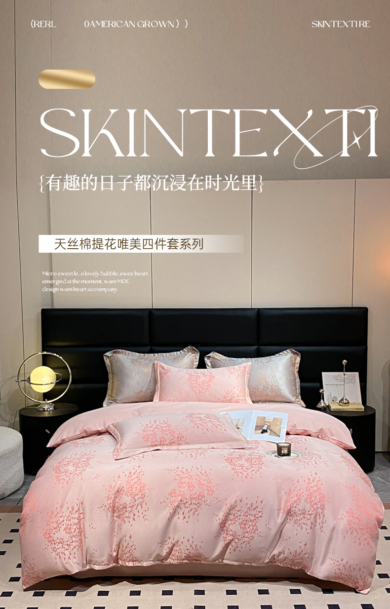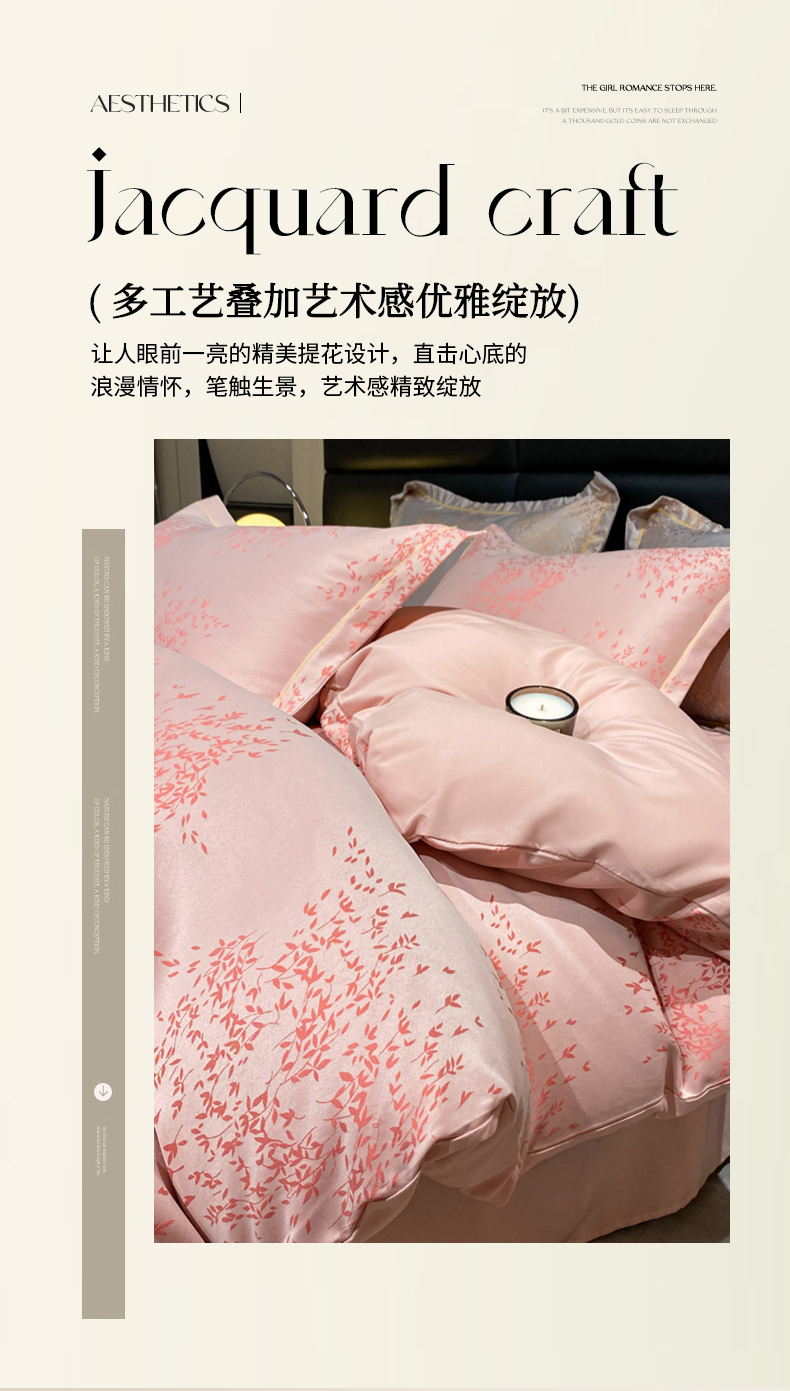 商品名称:潮邦创意家居 2025新款阳离子提花天丝棉四件套-金枝玉叶(可配礼盒) 琳娜粉