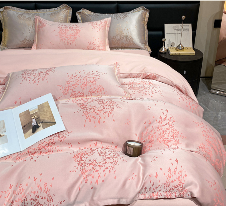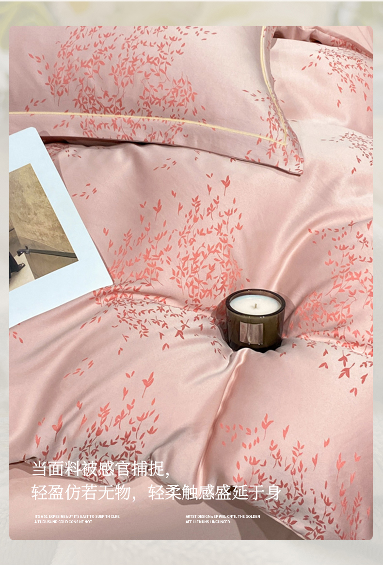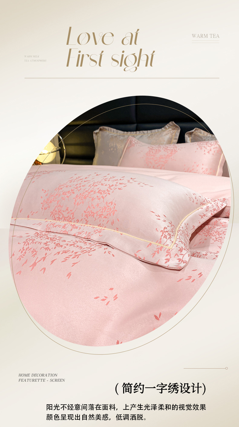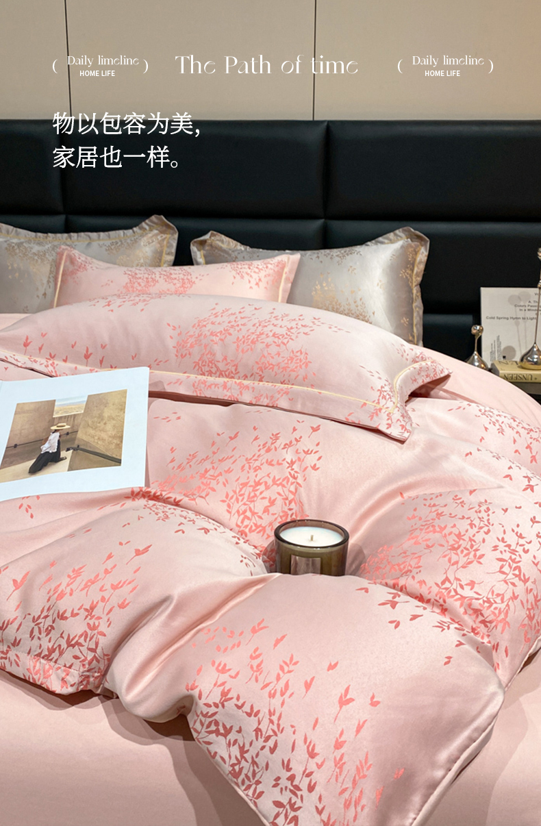 潮邦创意家居 2025新款阳离子提花天丝棉四件套-金枝玉叶(可配礼盒) 琳娜粉