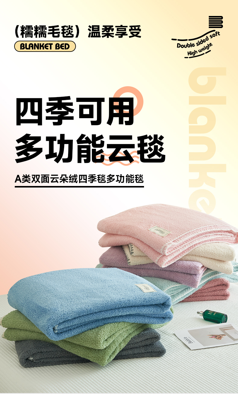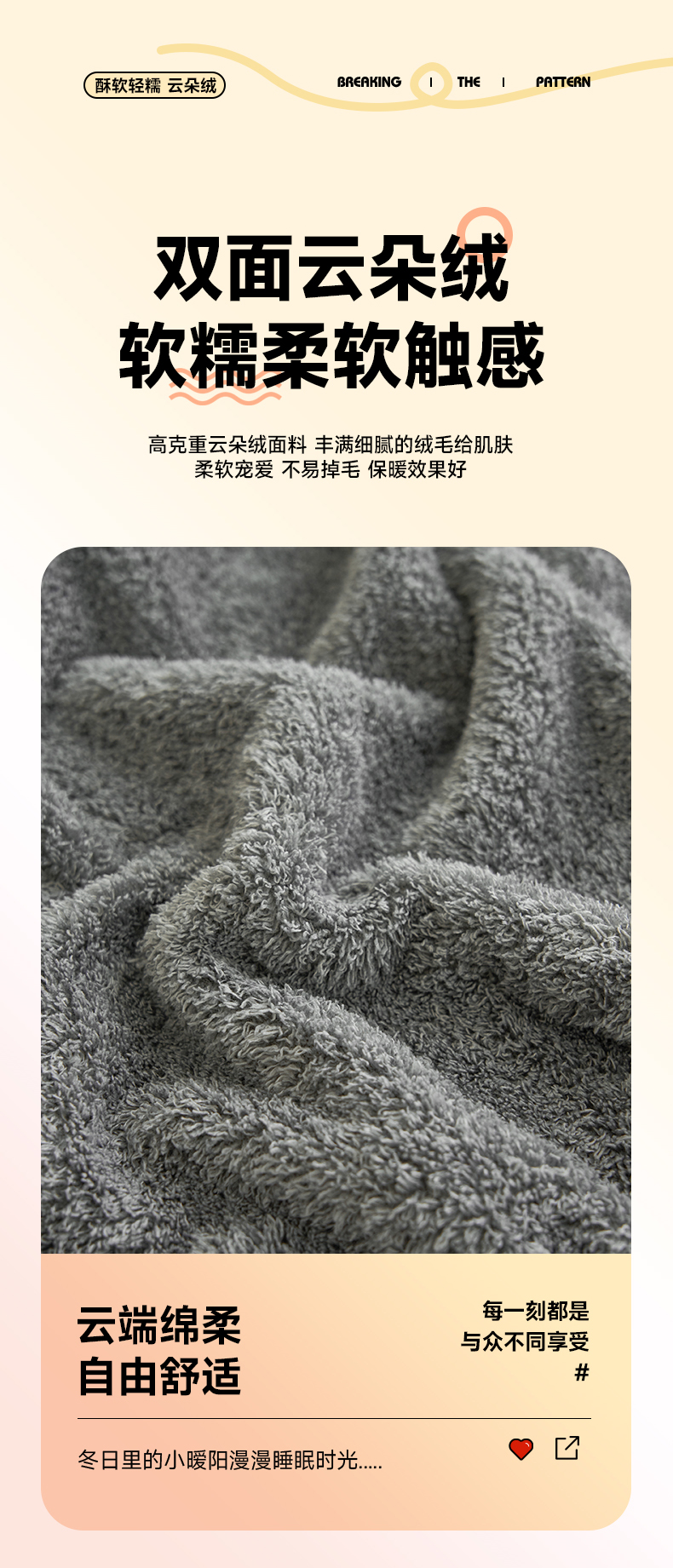 商品名称:艾佳 2025新款双面云朵绒四季毯多功能撸猫毯 云朵绒毯 雅士灰