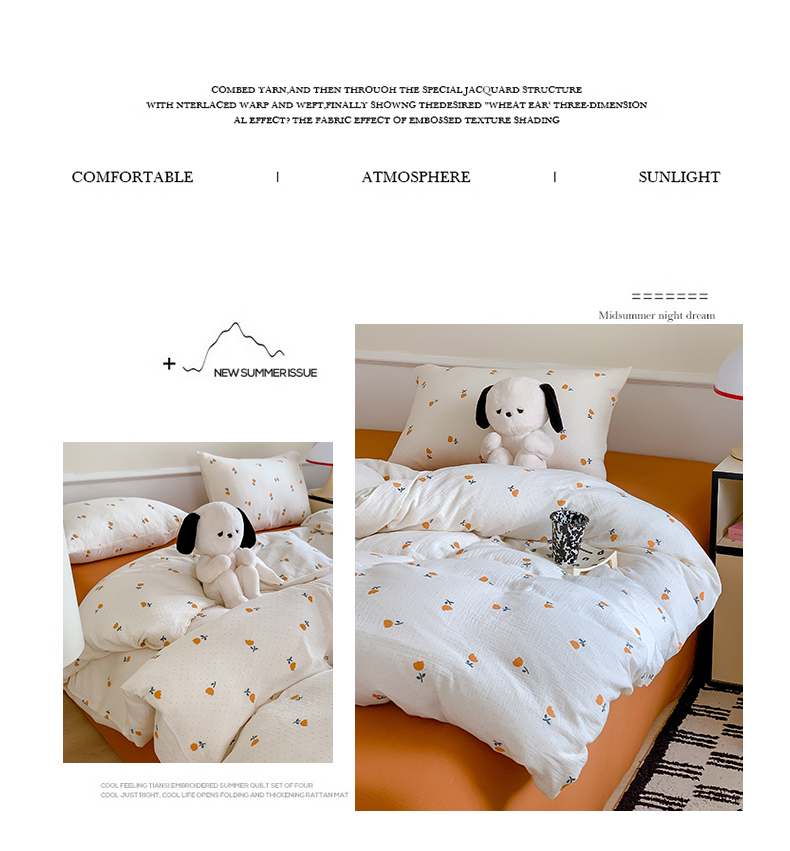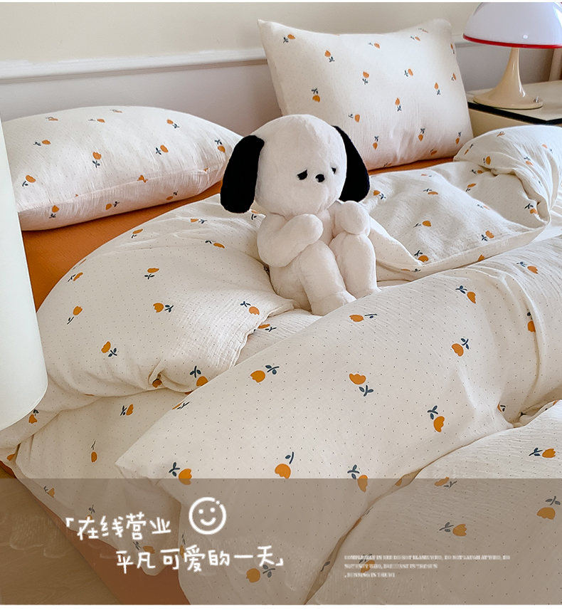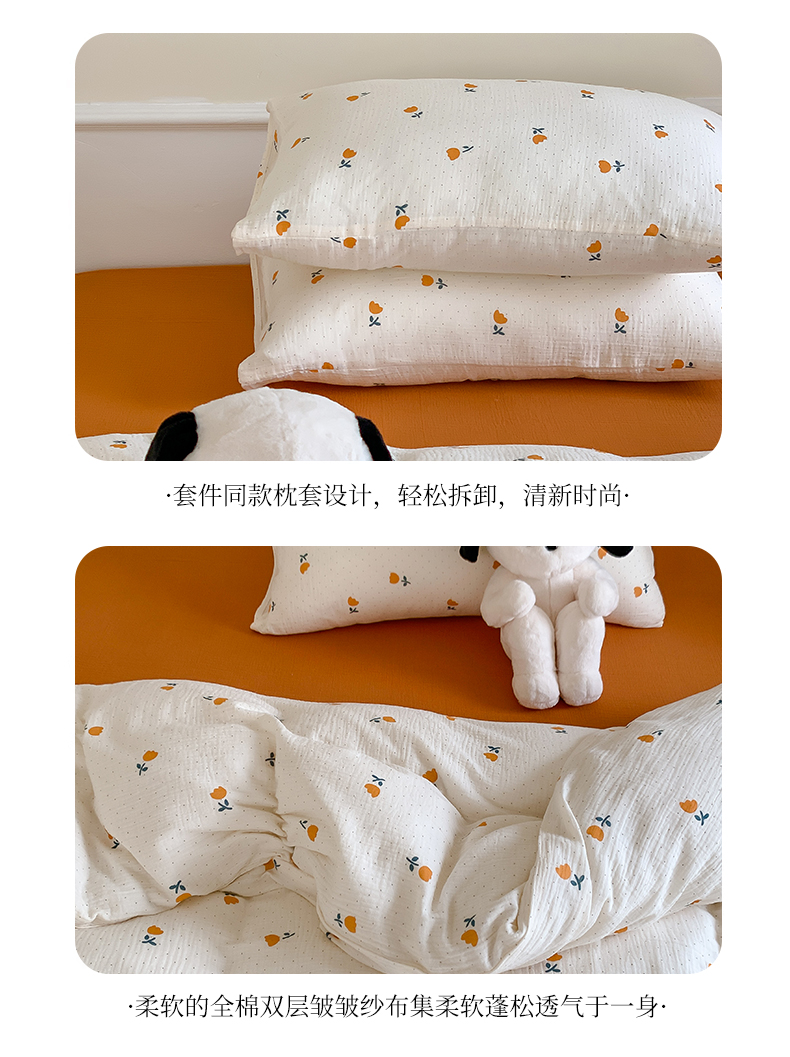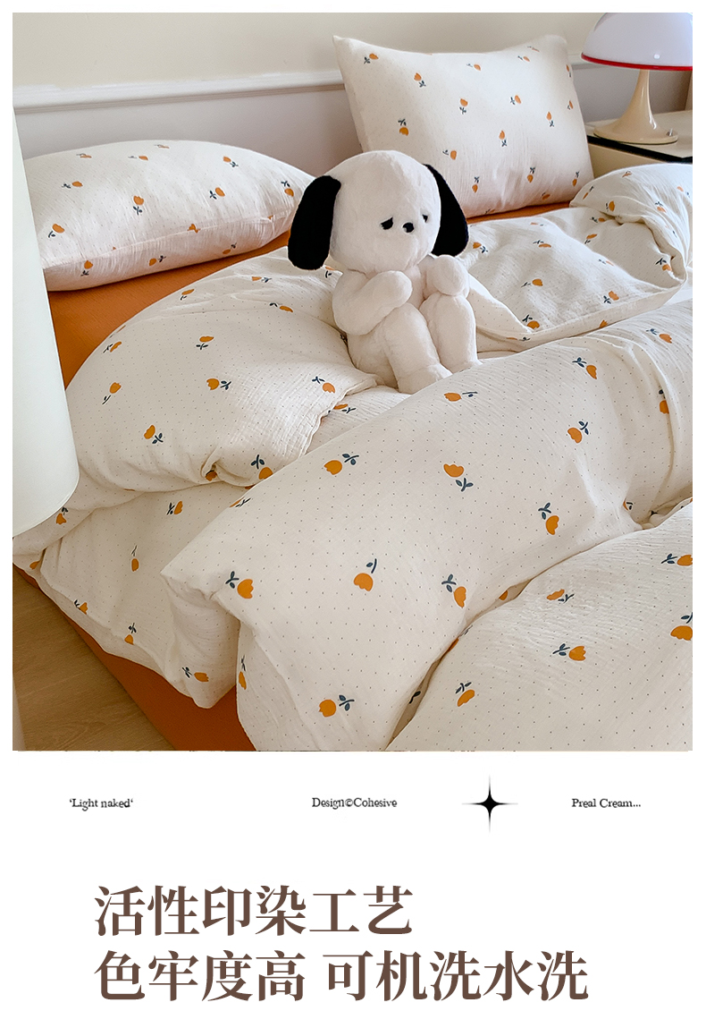商品名称:萝莉家纺2025新款全棉双层皱皱纱四件套 郁金香