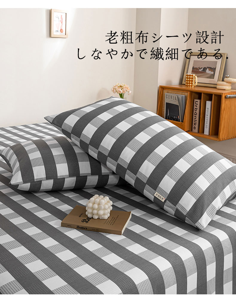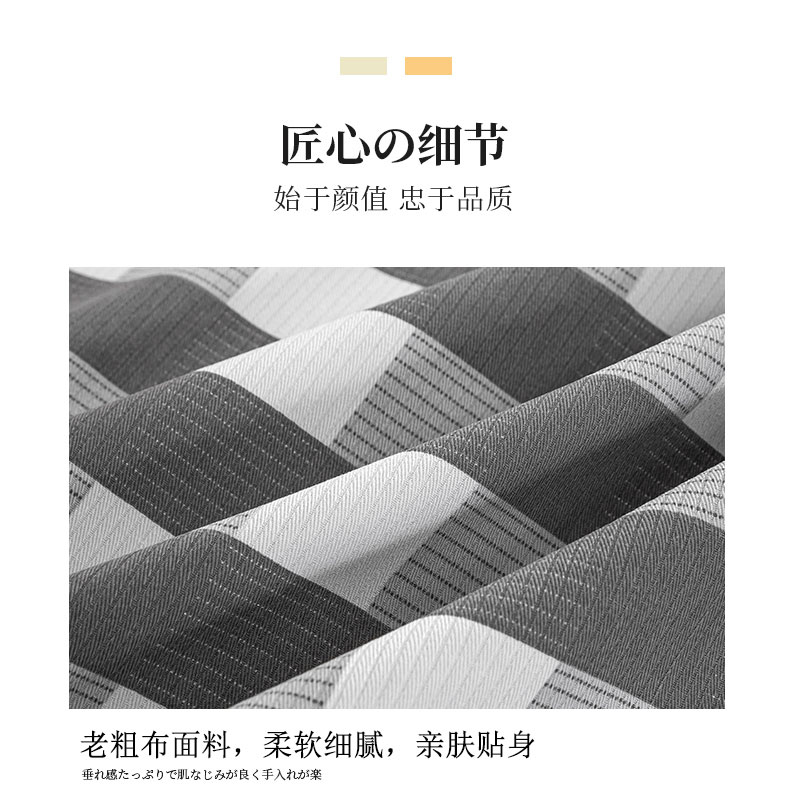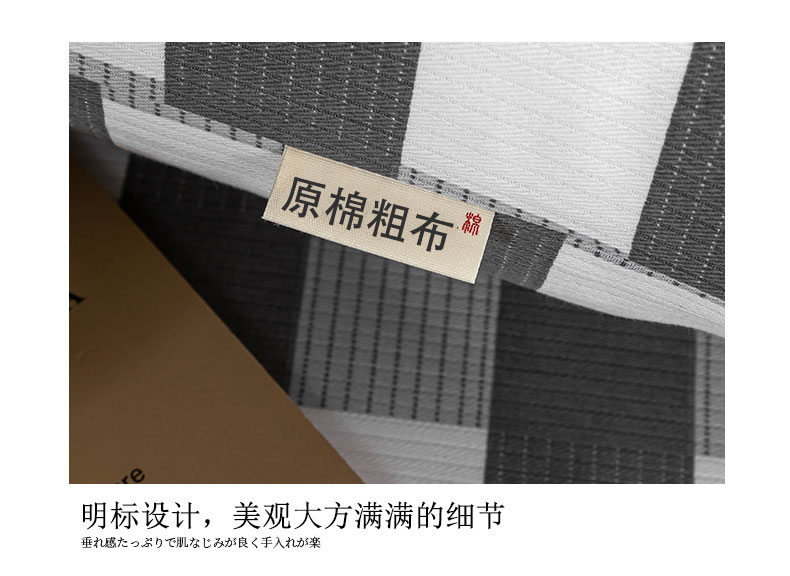 商品名称:鸣升 新款舒适透气100%全棉老粗布枕套 黑小格