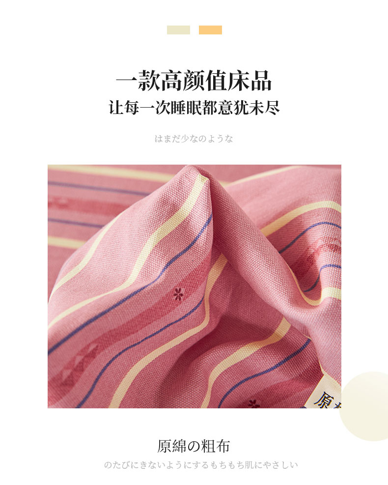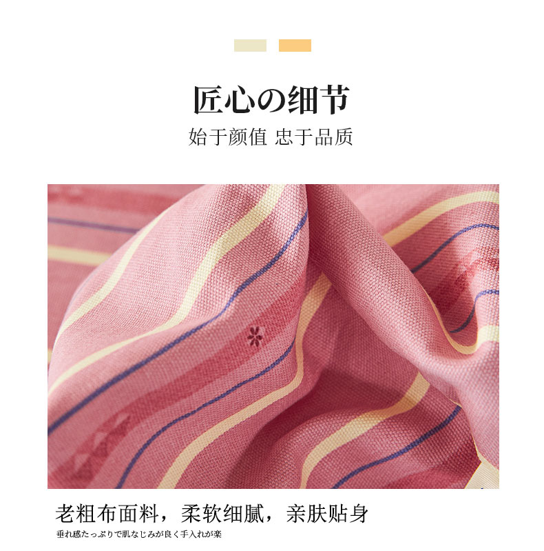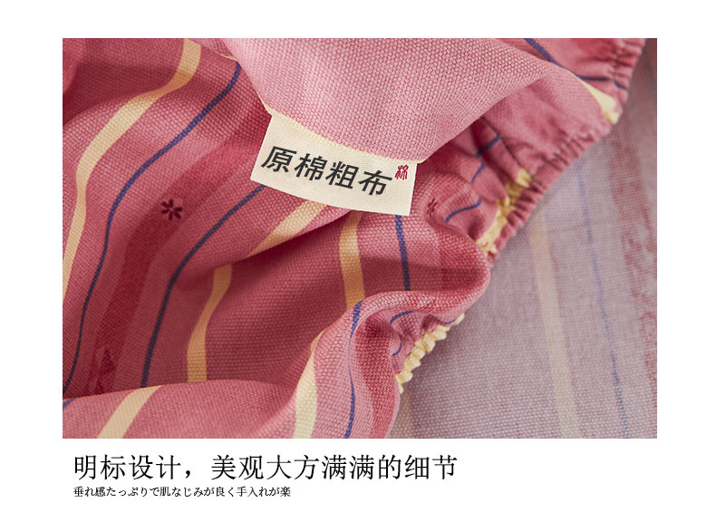 鸣升 新款舒适透气全棉老粗布床笠 北野-粉
