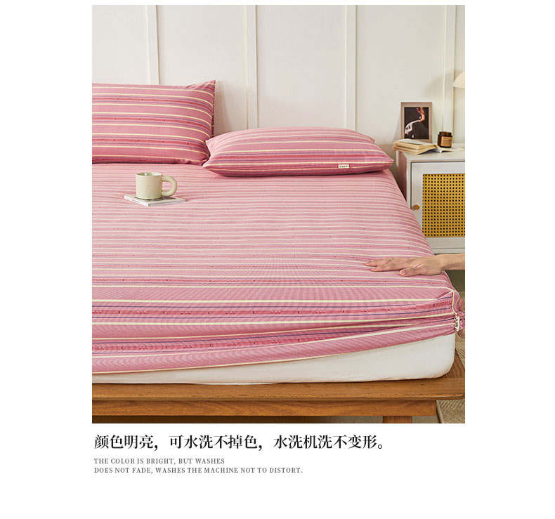 • 91家纺网 家纺一手货源 找家纺 鸣升 新款舒适透气全棉老粗布床笠 北野-粉