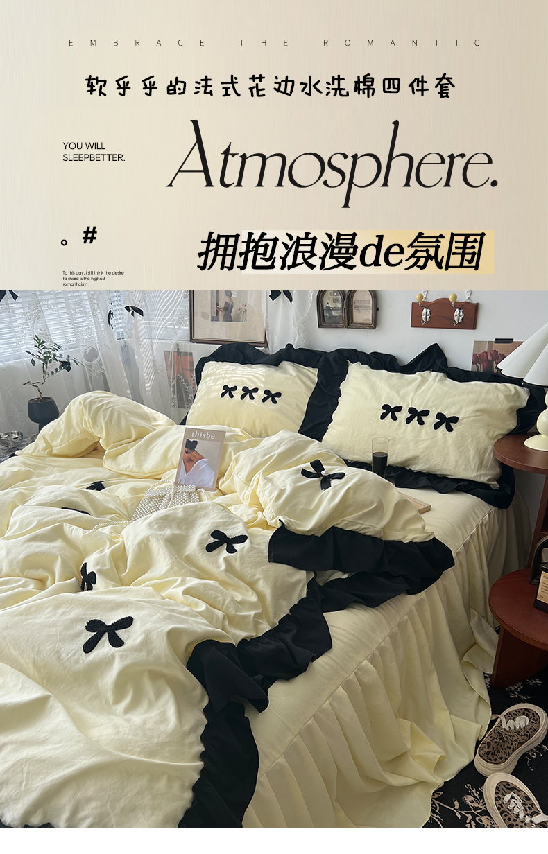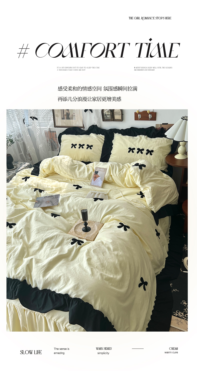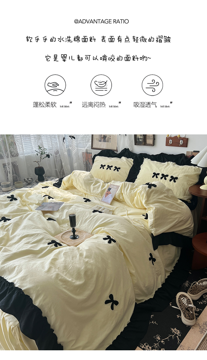 当前位置: 91家纺网 > 商品网购 > 床品套件 > 四件套 > 水洗棉四件套 > 原素 2024新款赫本系列法式花边水洗棉四件套 法式芝士