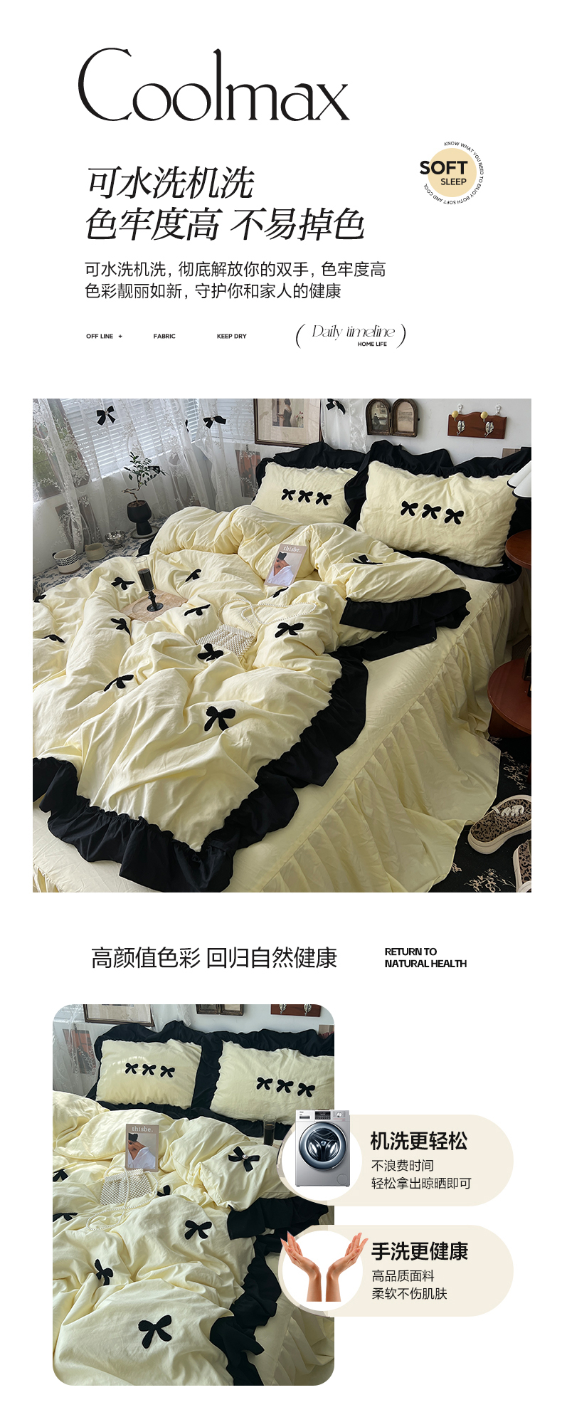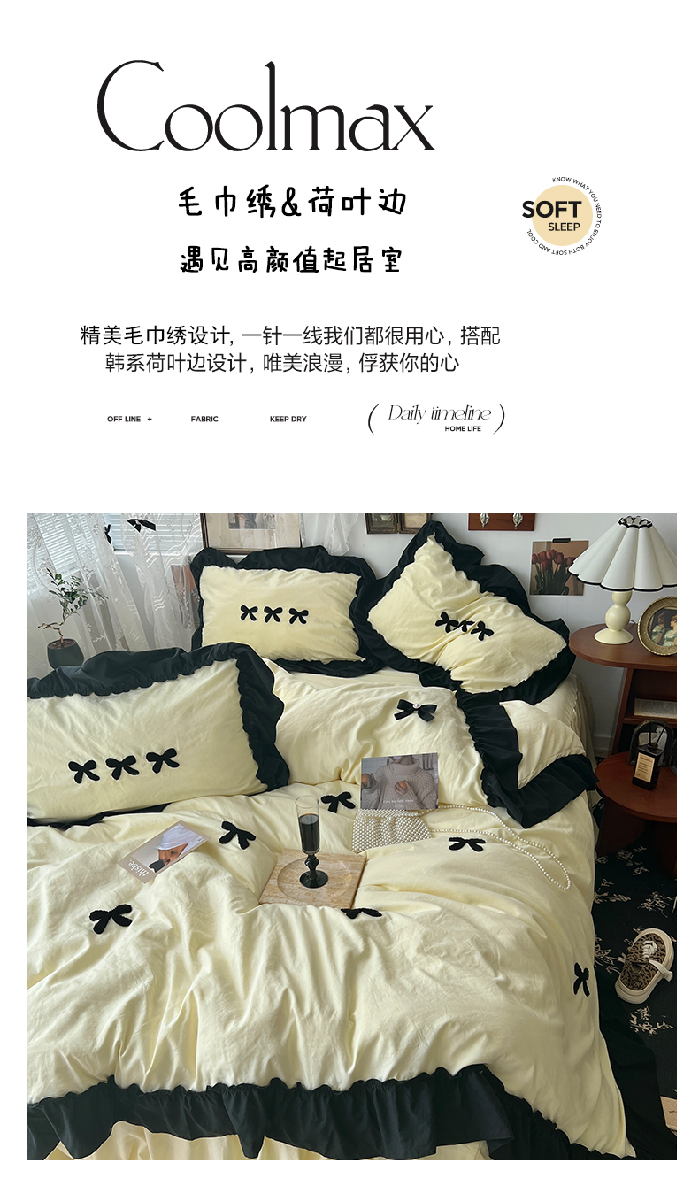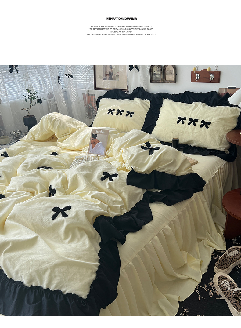 当前位置: 91家纺网 > 商品网购 > 床品套件 > 四件套 > 水洗棉四件套 > 原素 2024新款赫本系列法式花边水洗棉四件套 法式芝士