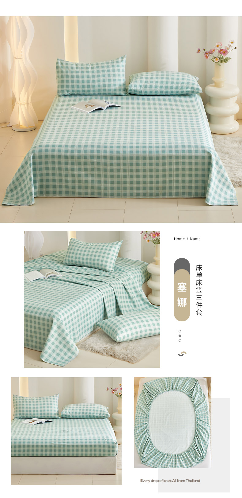 怡家居 2024新款A类老粗布枕套床单床笠单品组合三件套 塞娜