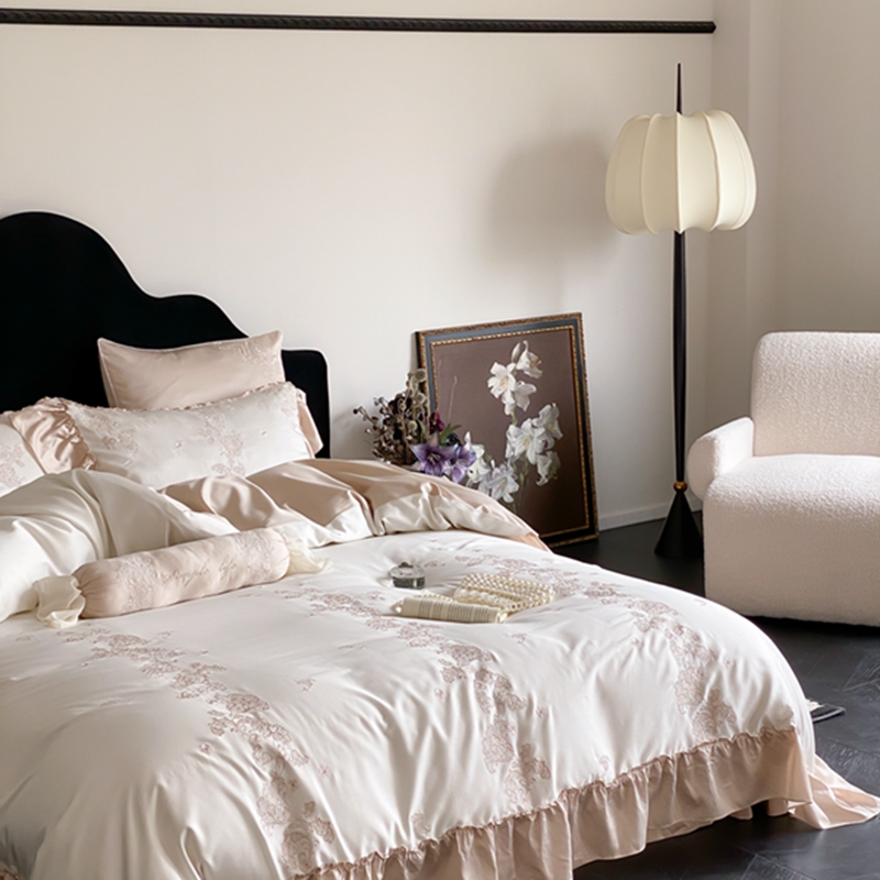(总)MIU缪家居 2025春夏新款60支兰精天丝四件套-爱莎,爱莎-浅粉,爱莎-乳白