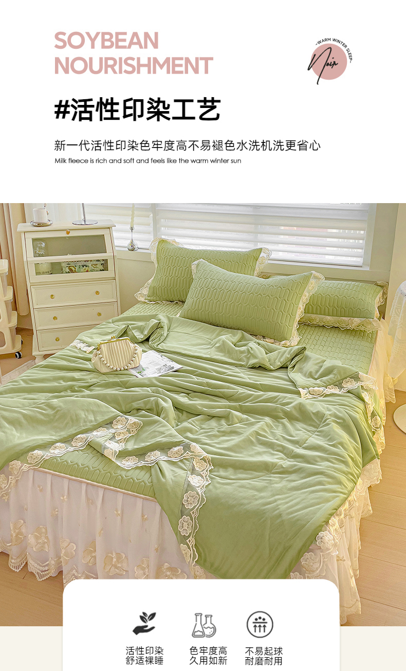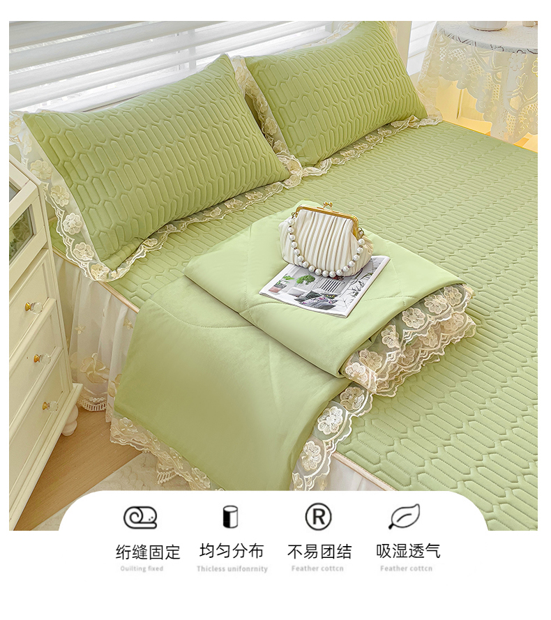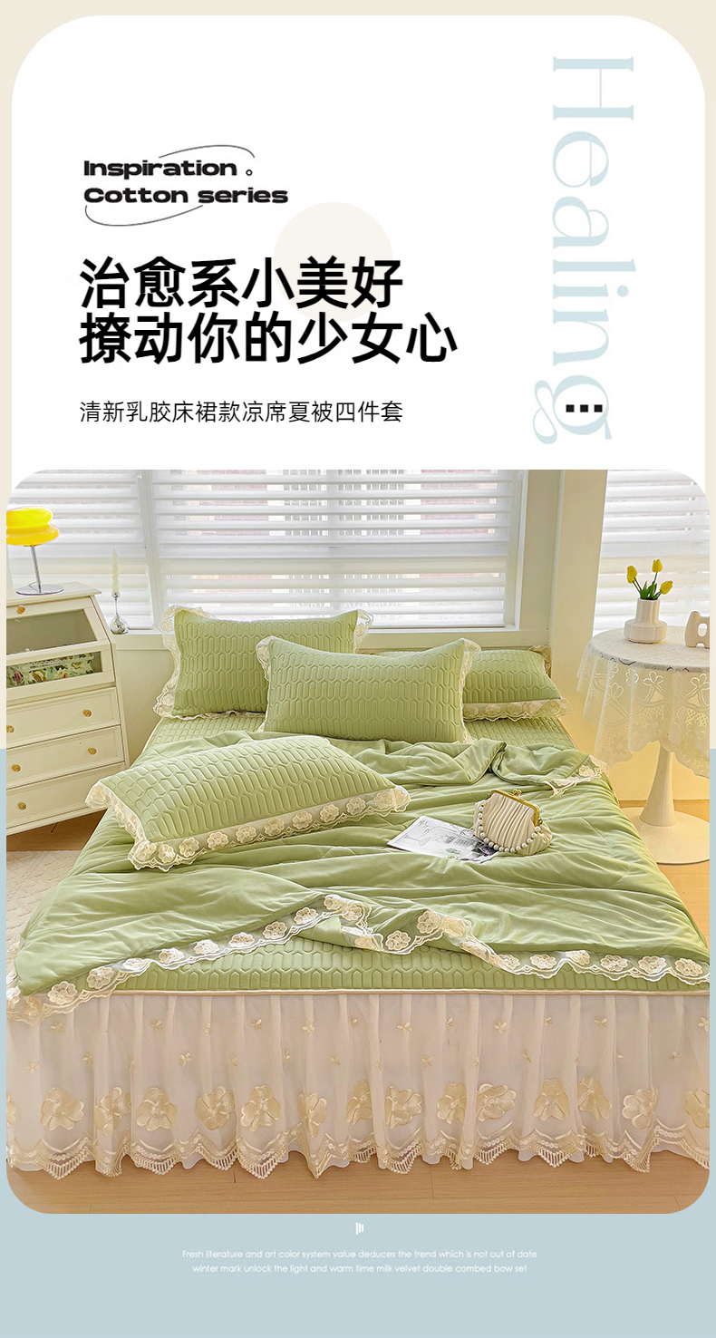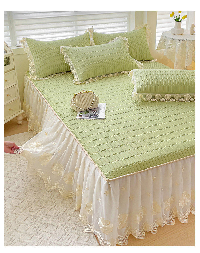 当前位置: 91家纺网 > 商品网购 > 床上用品 > 凉席 > 其他凉席 > 米莱家纺 2024新款蕾丝绣花凉席四件套 可可绿