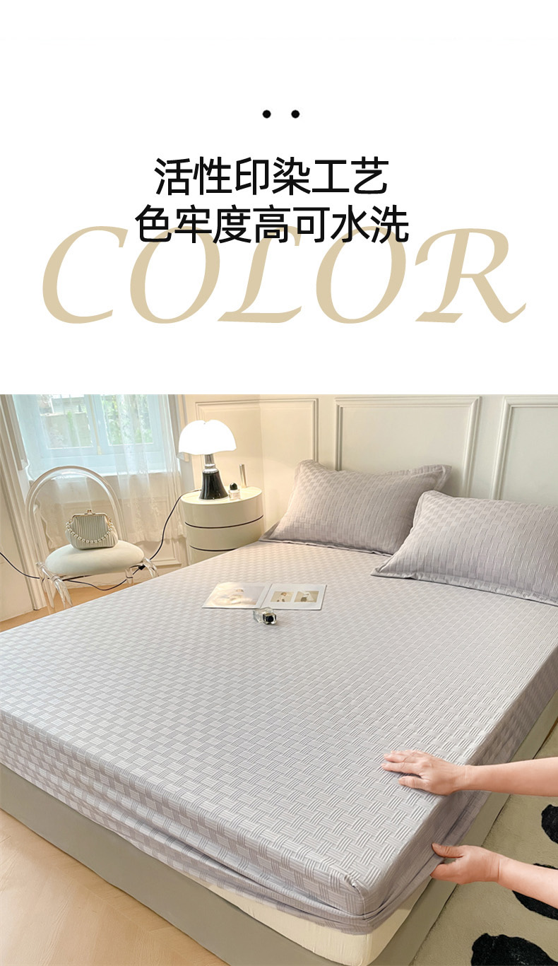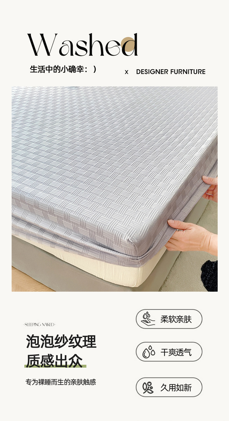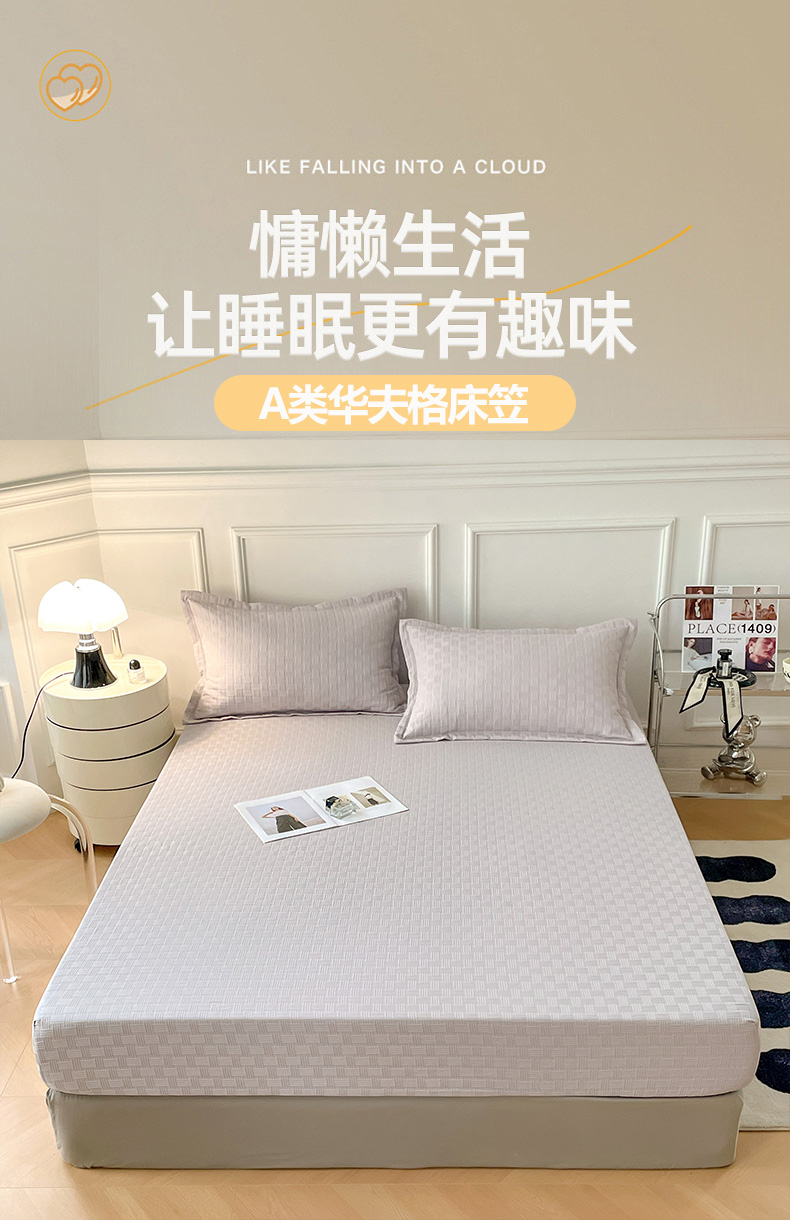 商品名称:梦舒羽 2025新款魔方格泡泡大提花床笠华夫格床垫保护套 华夫格纯色-浅灰色