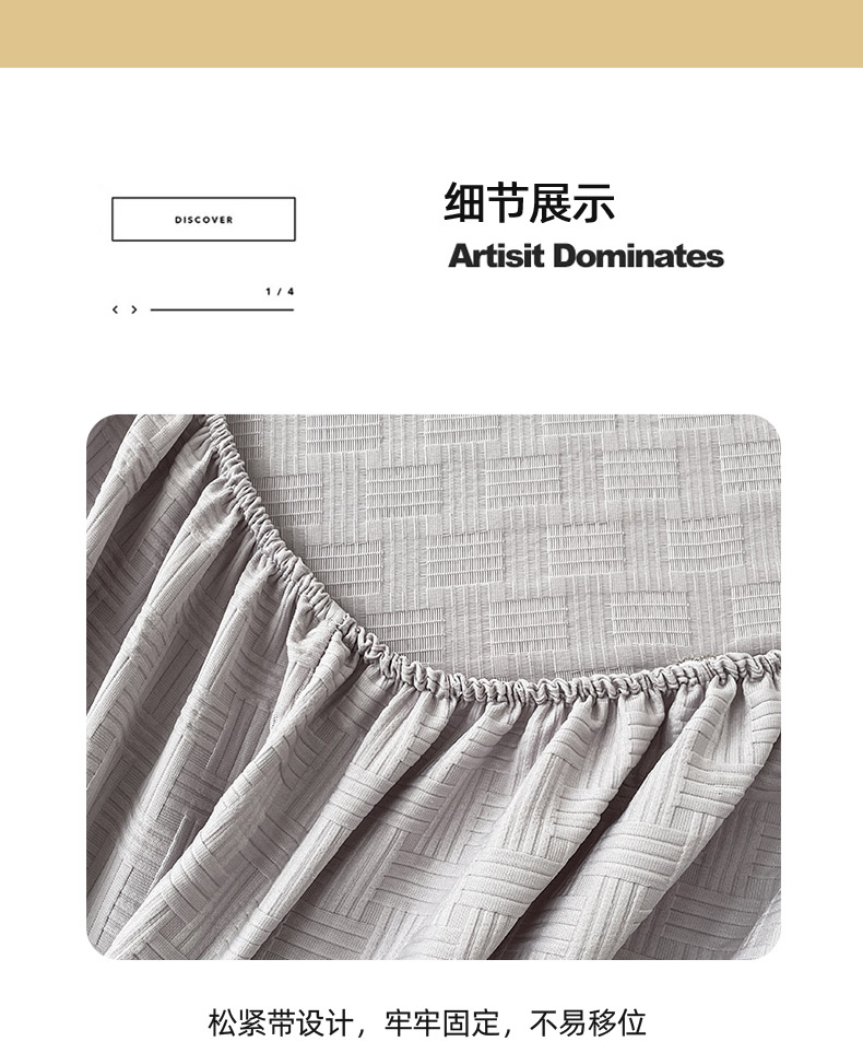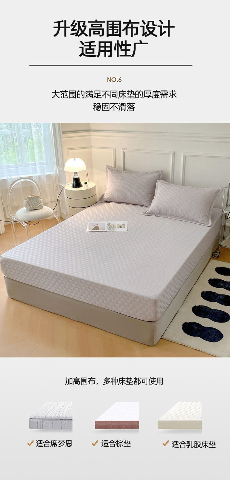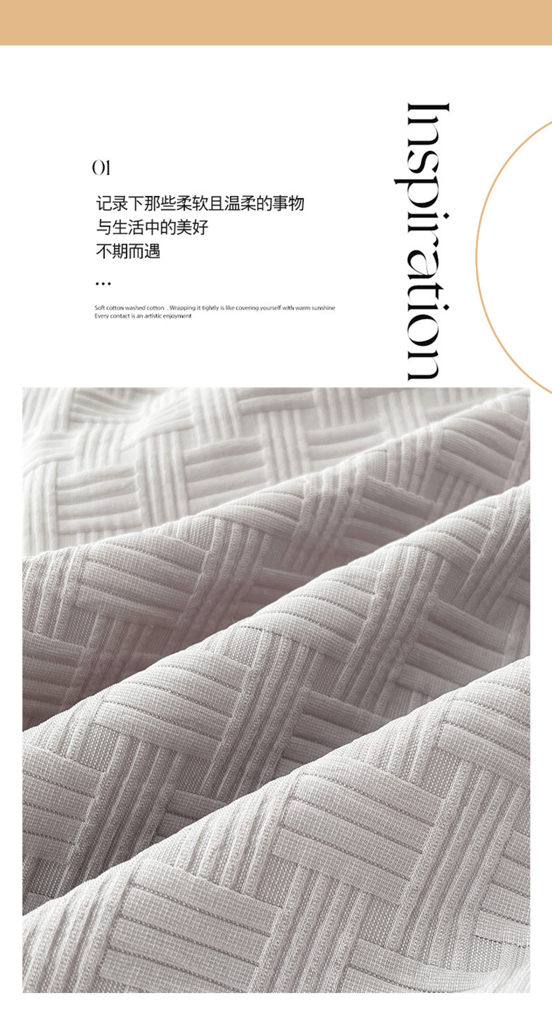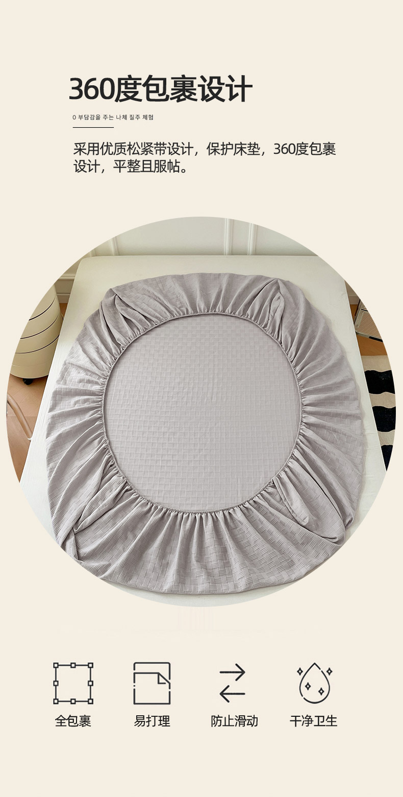 商品名称:梦舒羽 2025新款魔方格泡泡大提花床笠华夫格床垫保护套 华夫格纯色-浅灰色