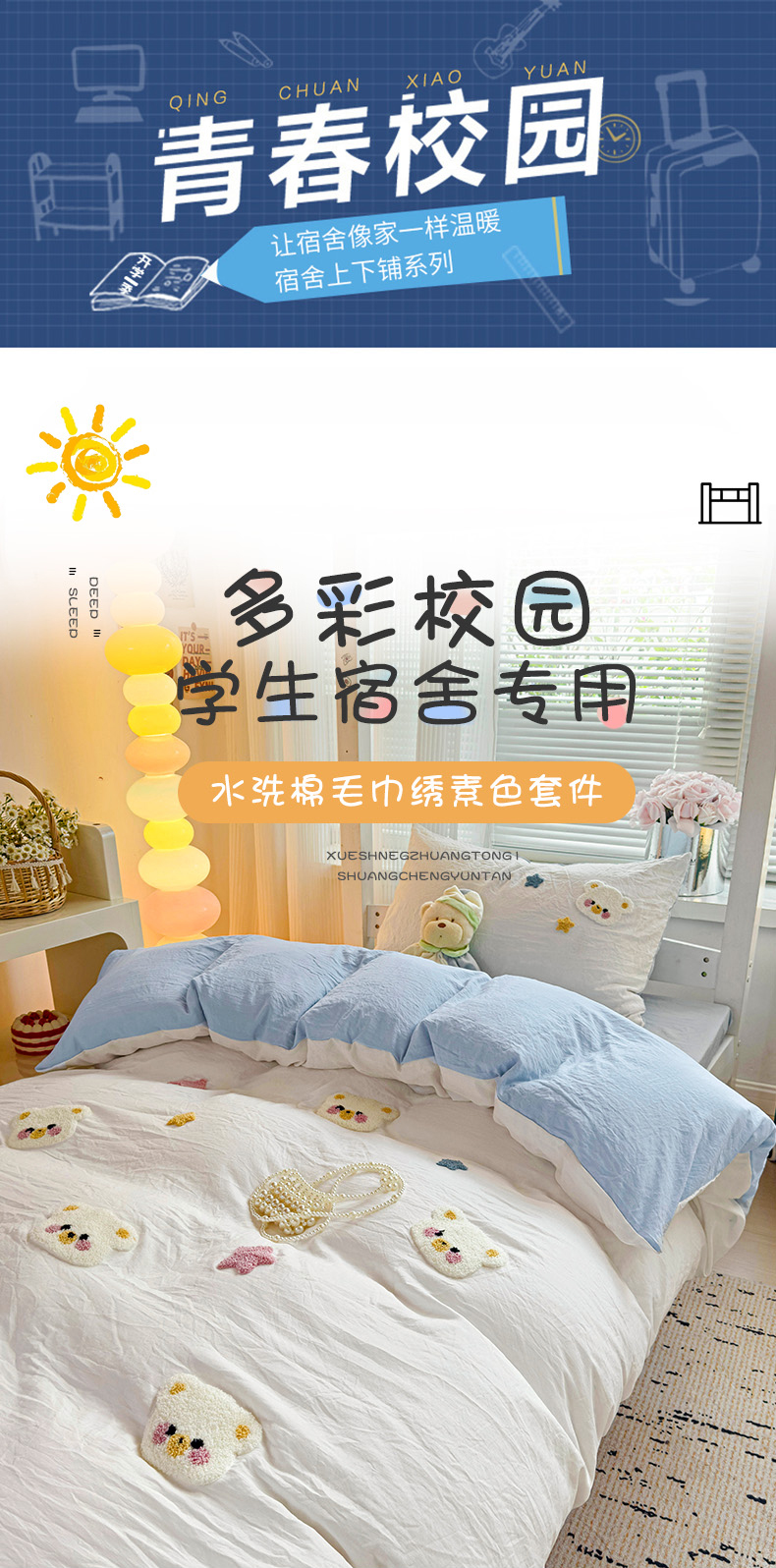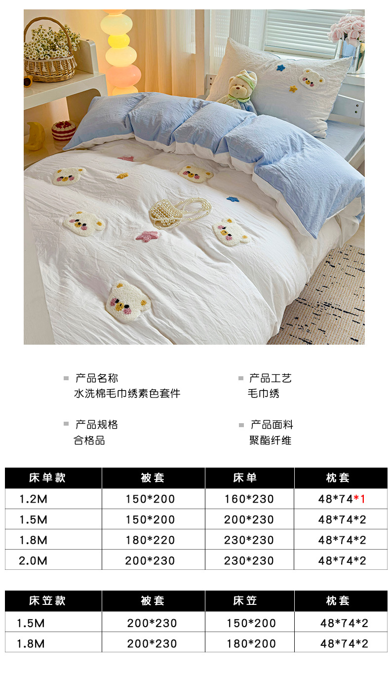 商品名称:韩巢家纺 2024新款超柔水洗棉毛巾绣学生宿舍上下铺专用单件被套-幸运熊系列(提供卖家秀) 幸运熊白蓝