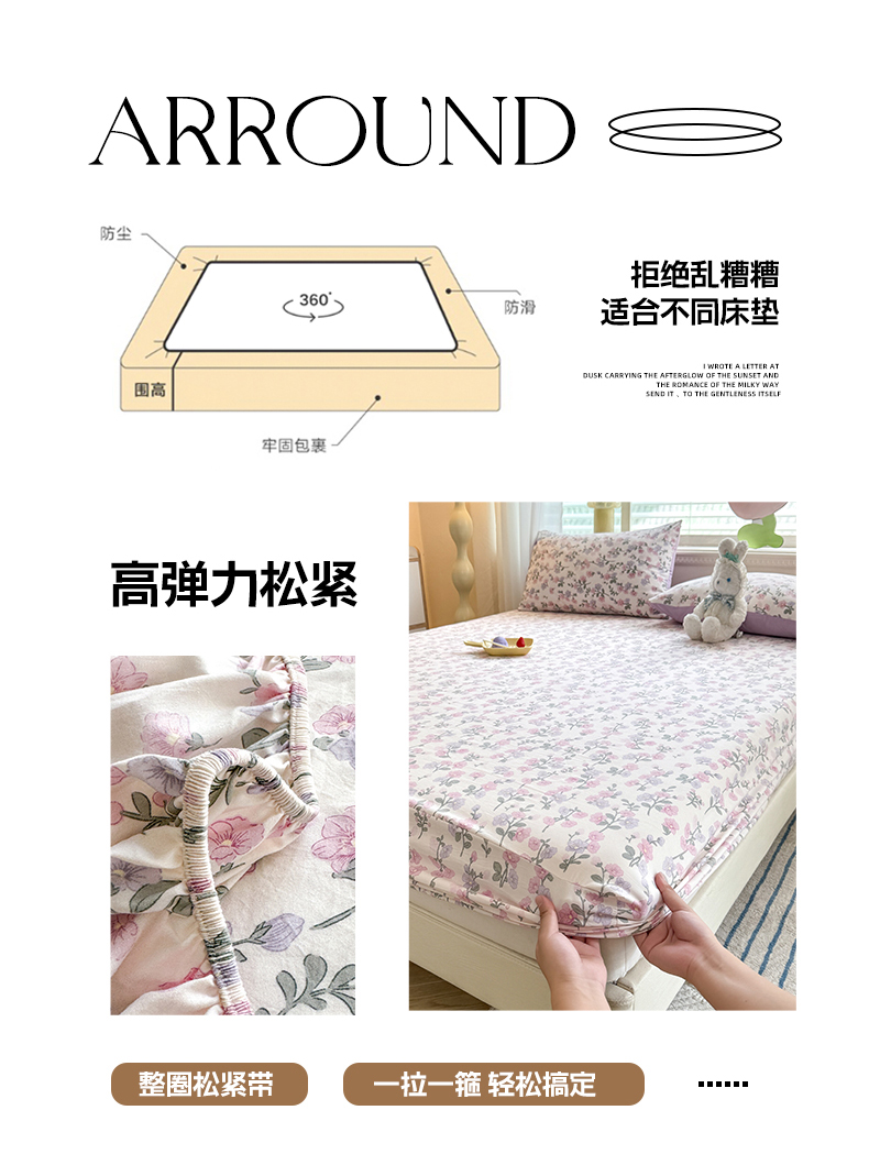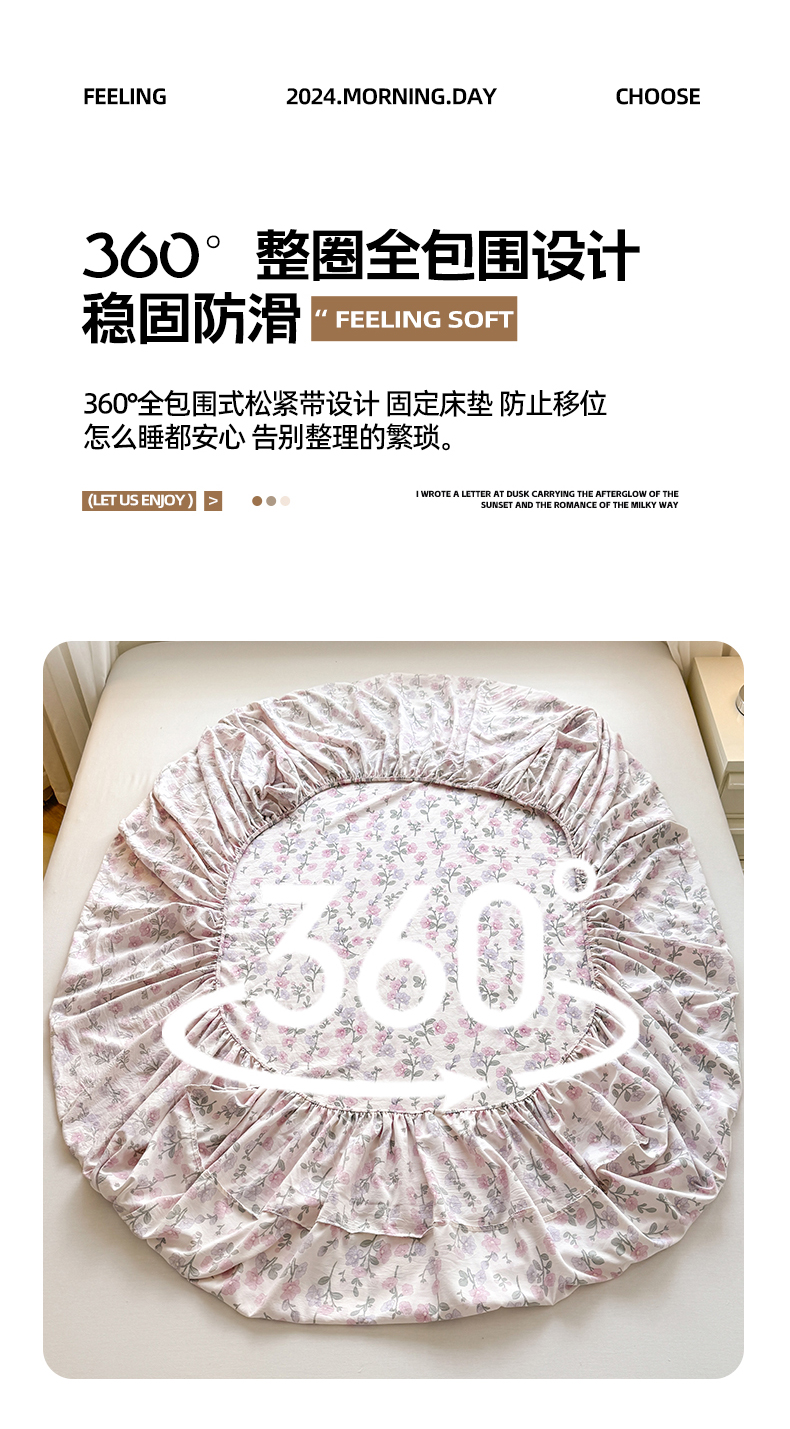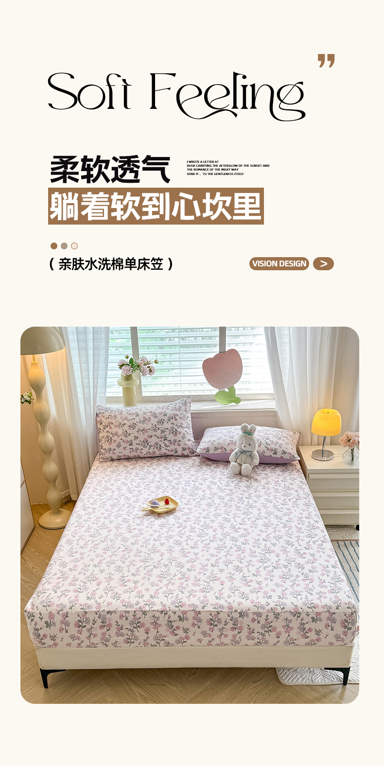 妖妖家纺 2024新款超柔软糯亲肤水洗棉单床笠 尽相思