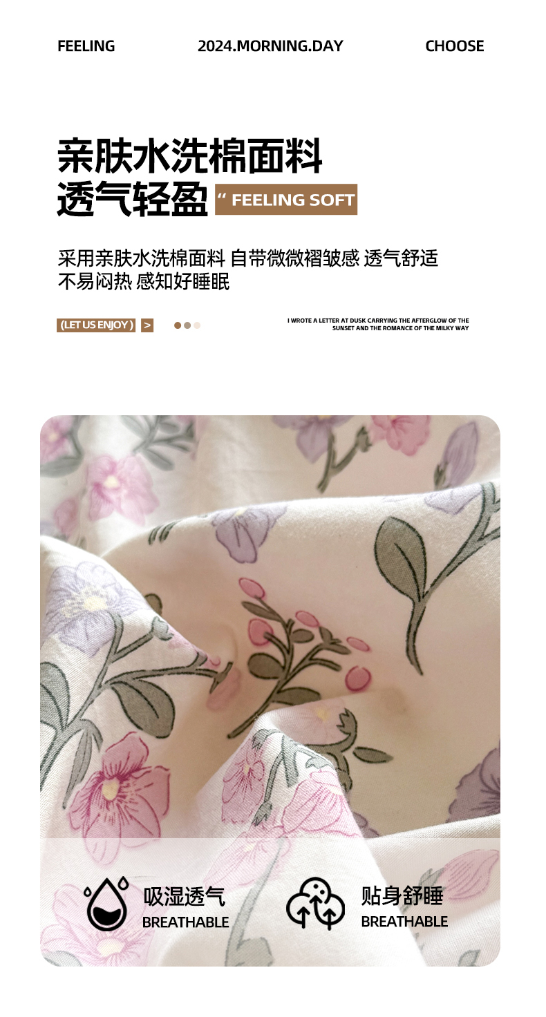 商品名称:妖妖家纺 2024新款超柔软糯亲肤水洗棉单床笠 尽相思