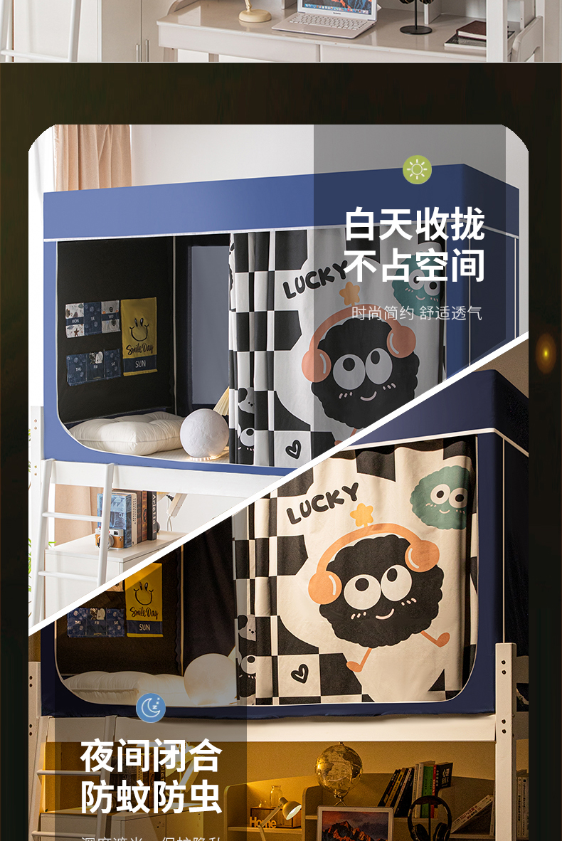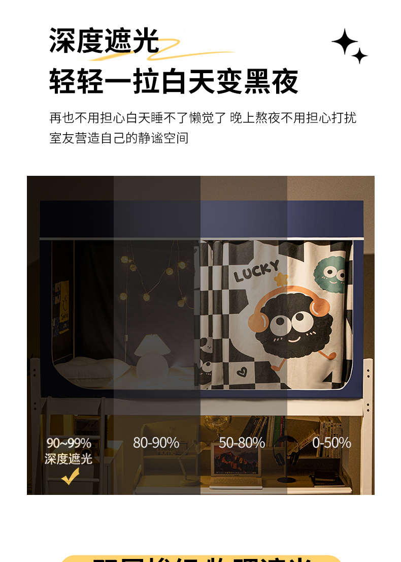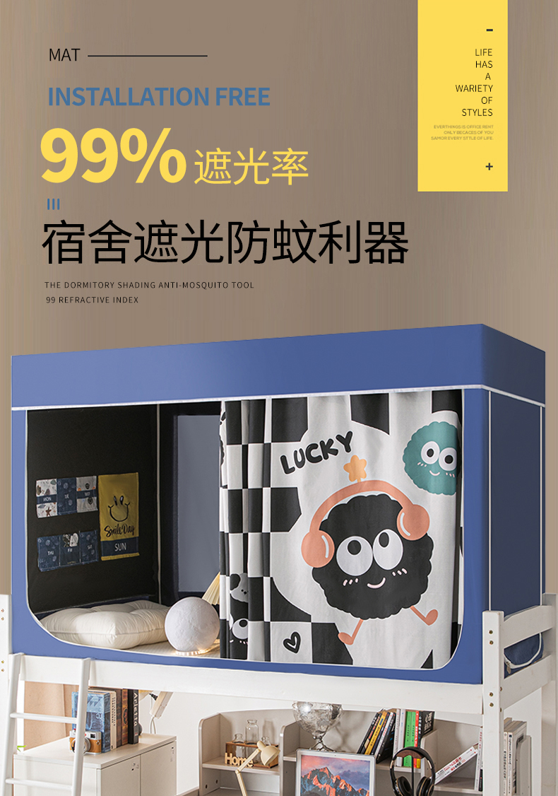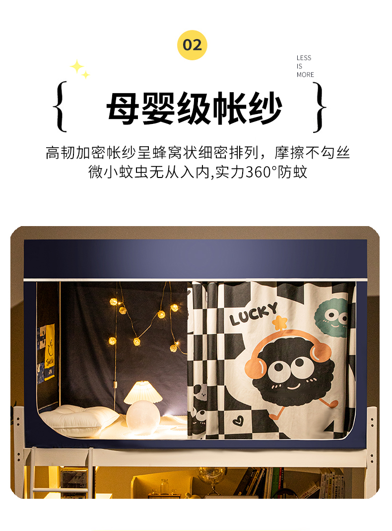 当前位置: 91家纺网 > 商品网购 > 床上用品 > 蚊帐 > 学生蚊帐 > 宅部落 2024新款学生床帘宿舍上下铺床帘式印花强遮光学生蚊帐 煤烦恼