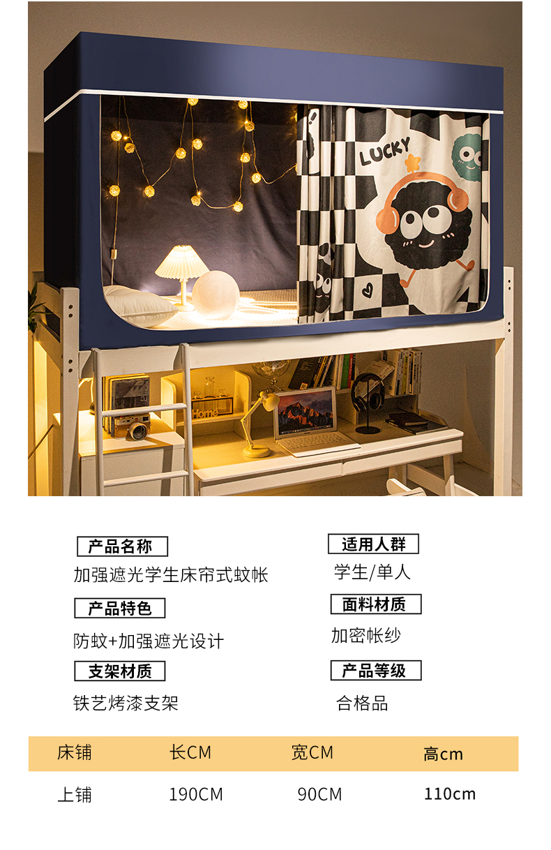 90上下铺通用(不靠墙帘):90宽*190长*90-110高(高度伸缩) | ¥95.00 |