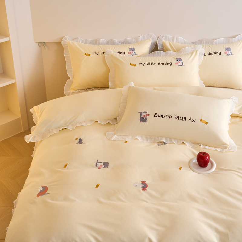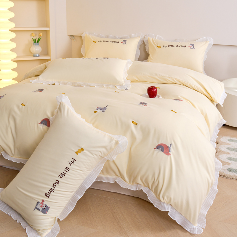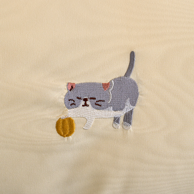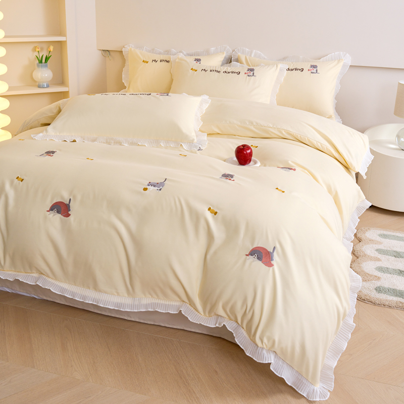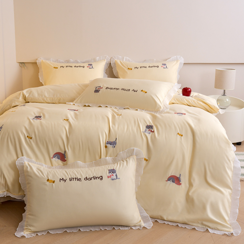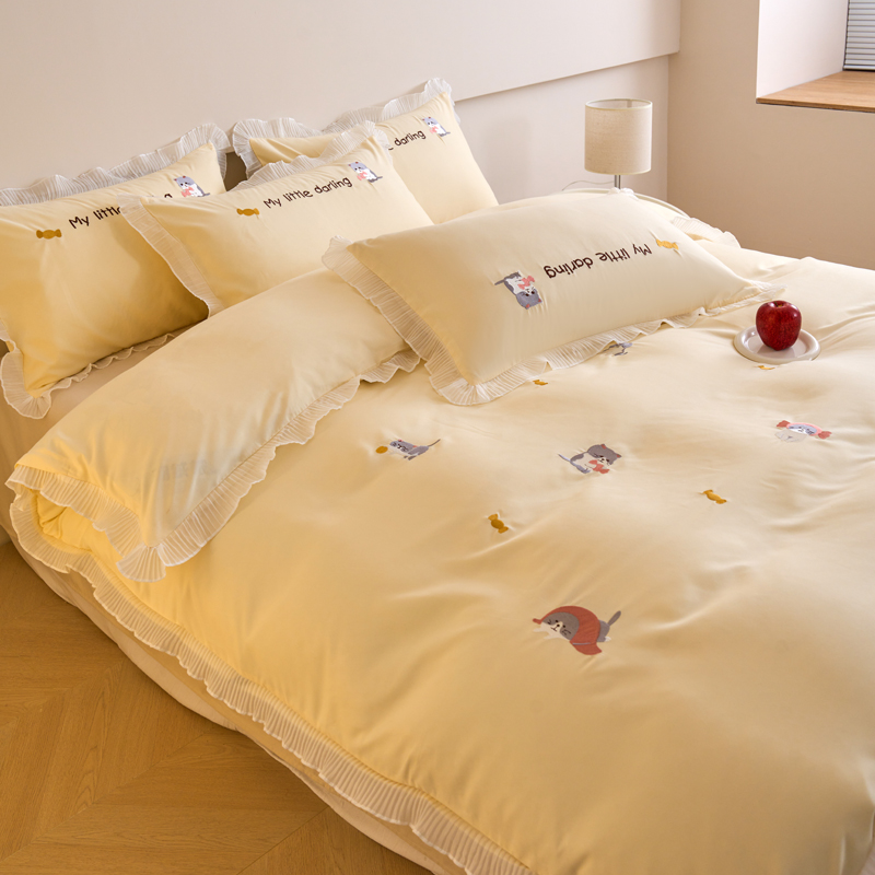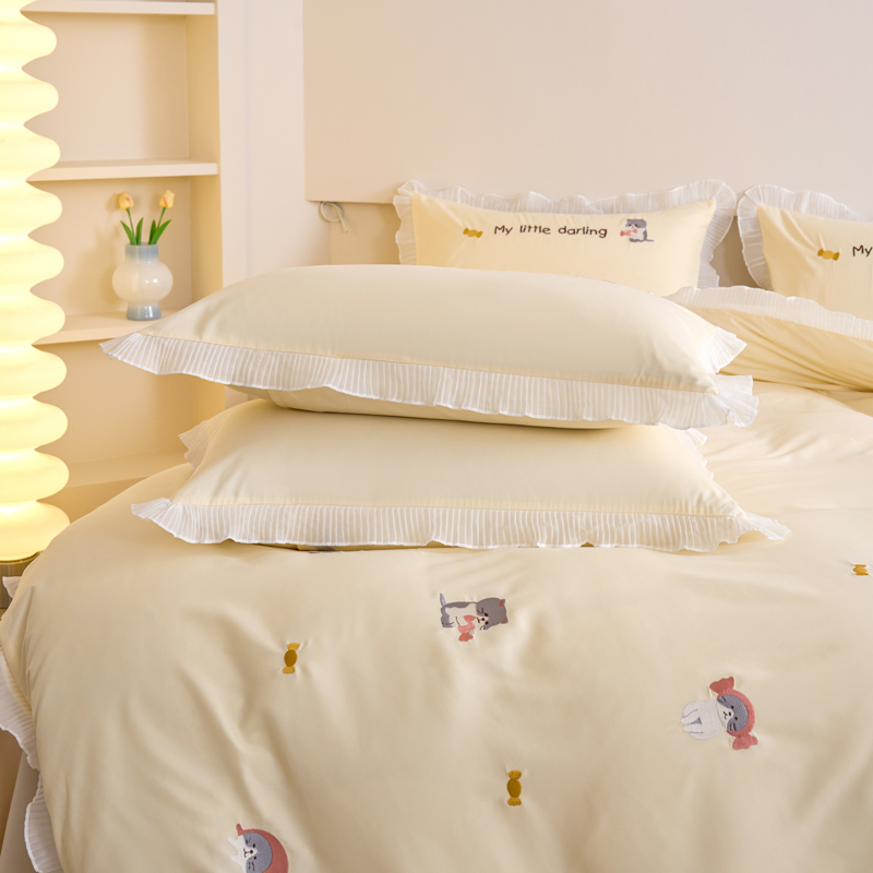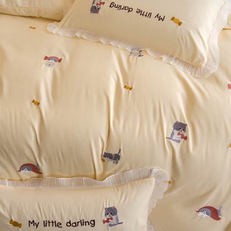 梧桐家居 2024新款全棉磨毛刺绣四件套-糖果小猫 糖果小猫-黄