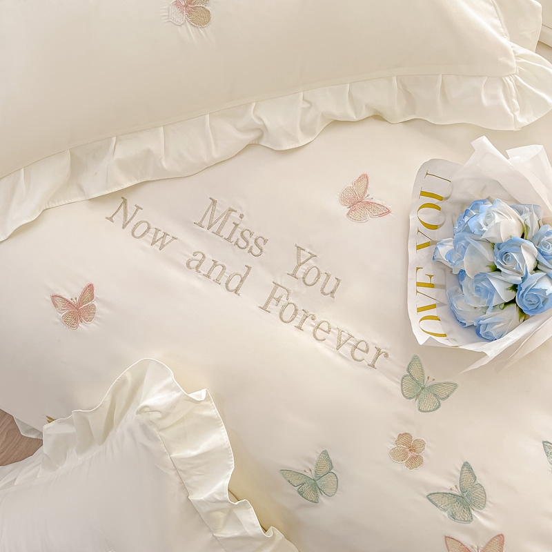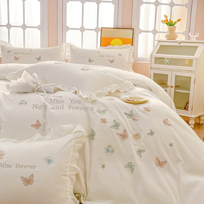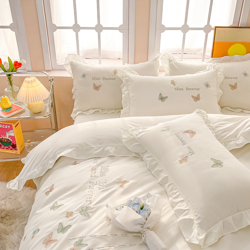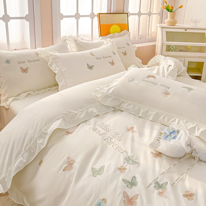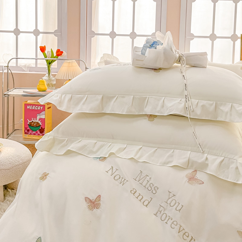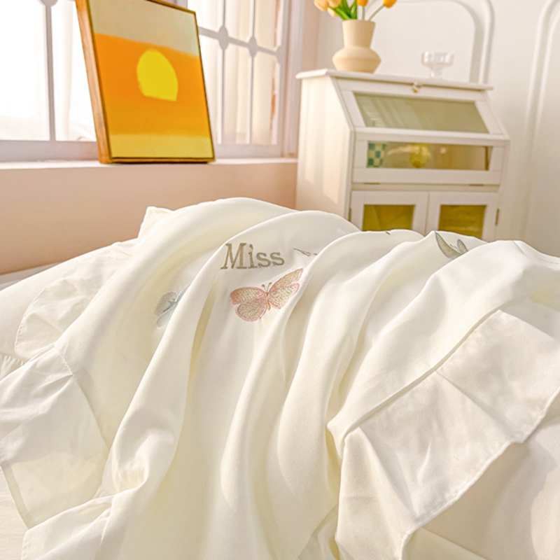 梧桐家居 2024新款亲肤棉花边四件套-蝶羽 蝶羽-白