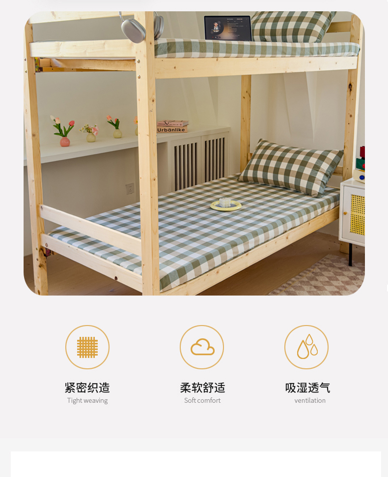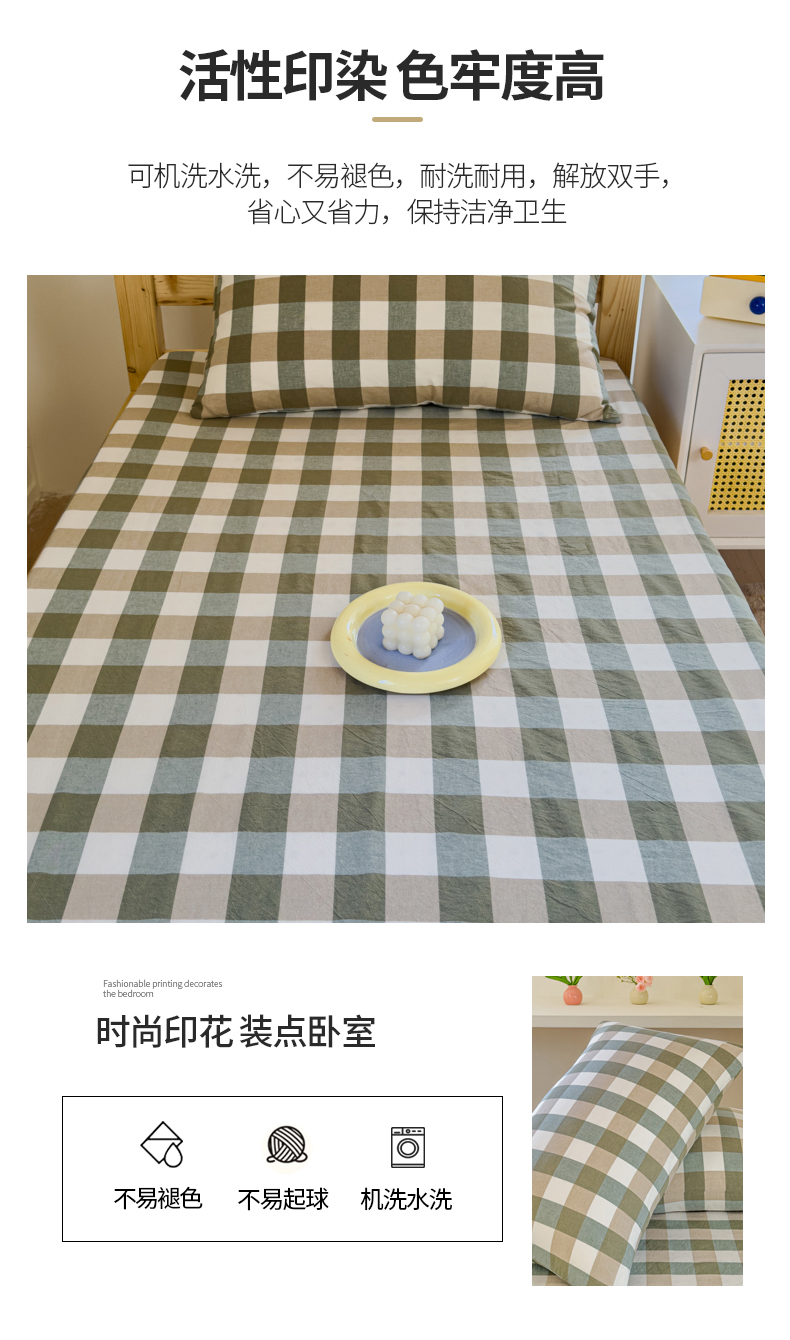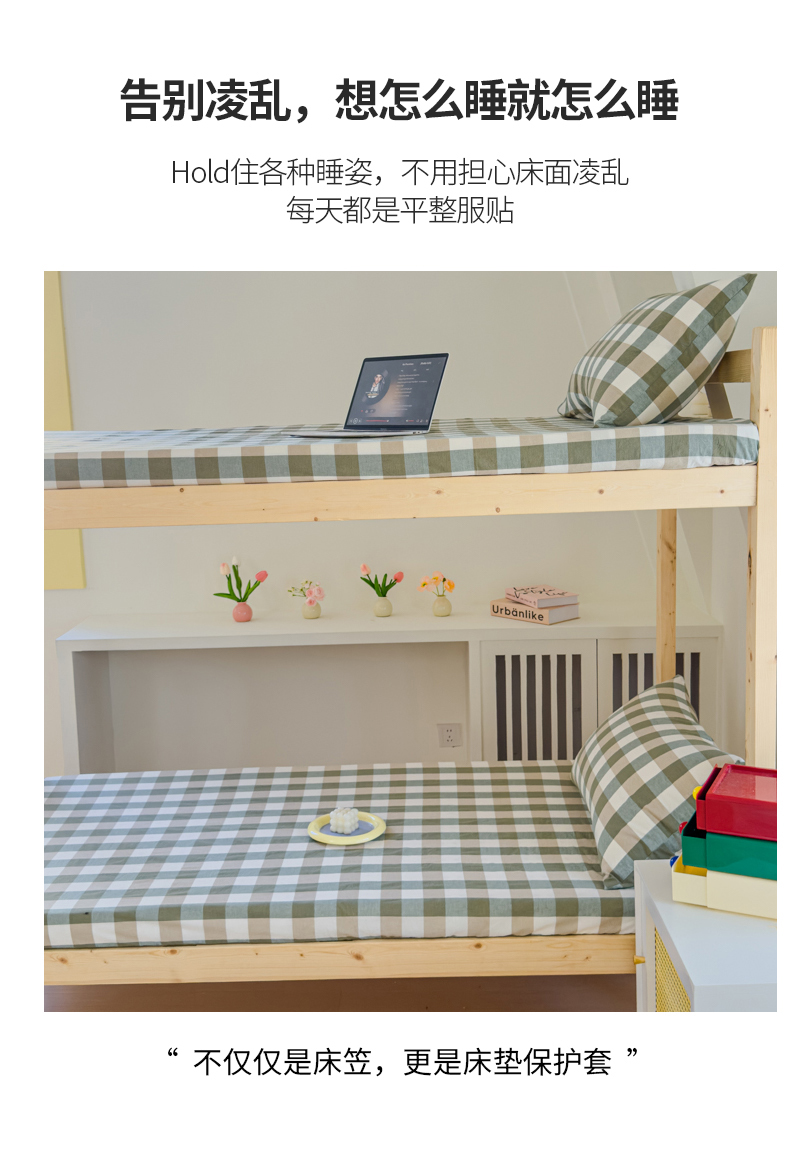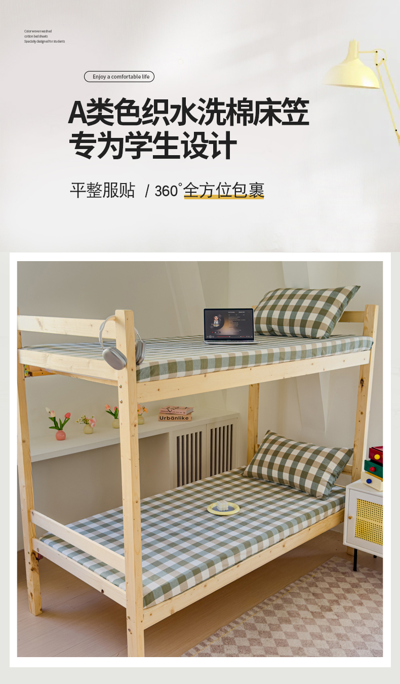 金丝鸟家纺 2024新款A类全棉色织水洗棉单床笠系列(学生床) 绿中格