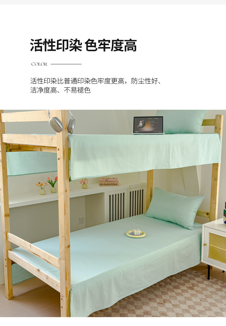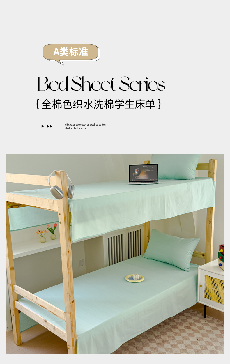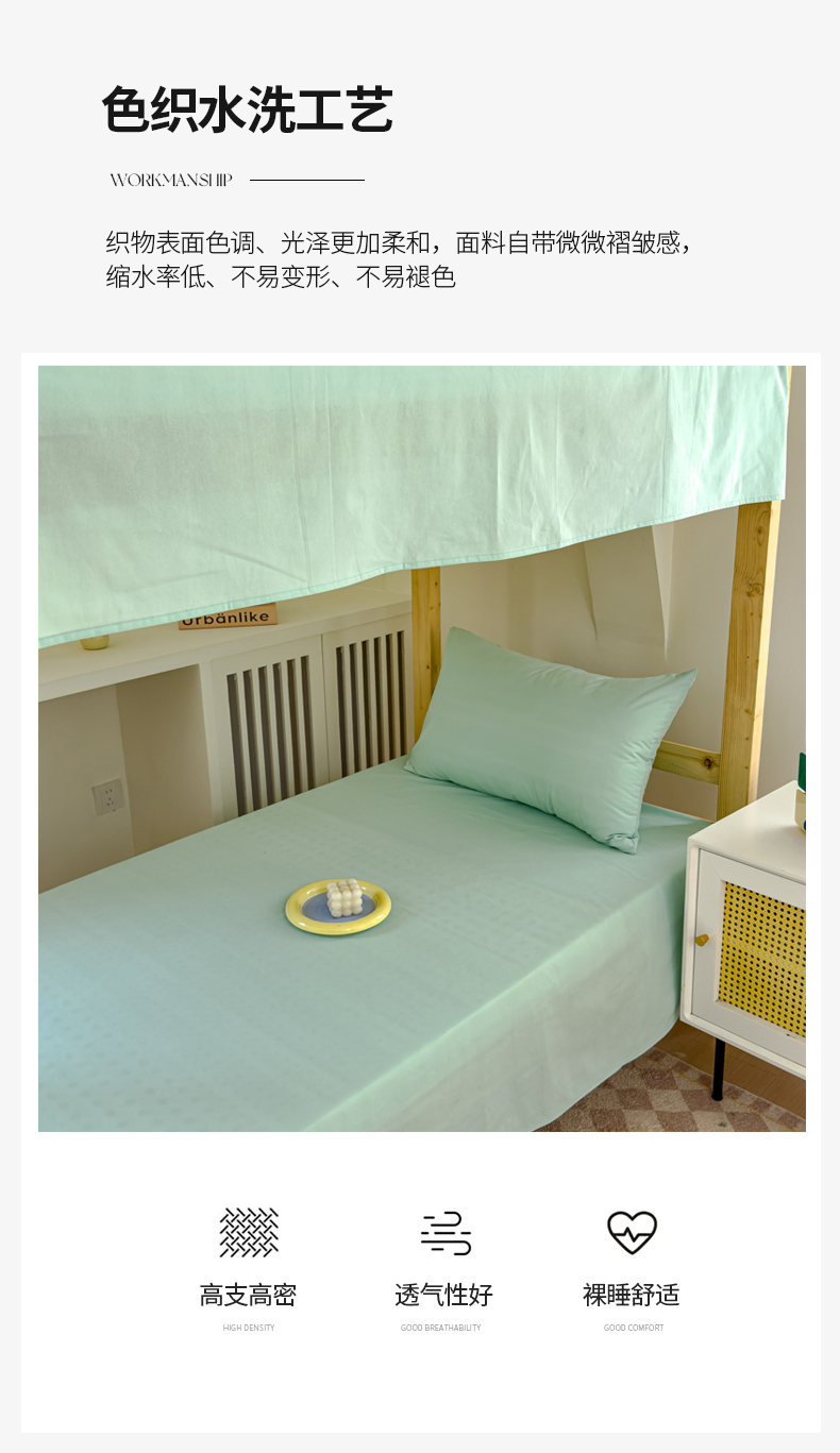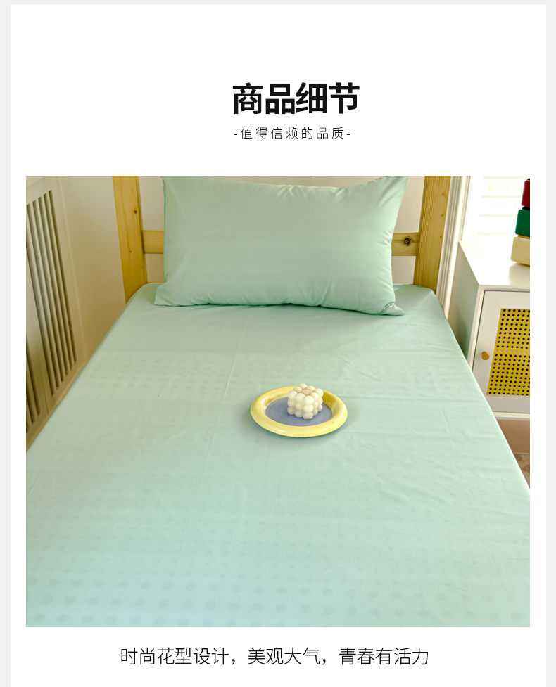 • 91家纺网 家纺一手货源 找家纺 金丝鸟家纺 2024新款A类全棉色织水洗棉单床单系列(学生床) 果绿