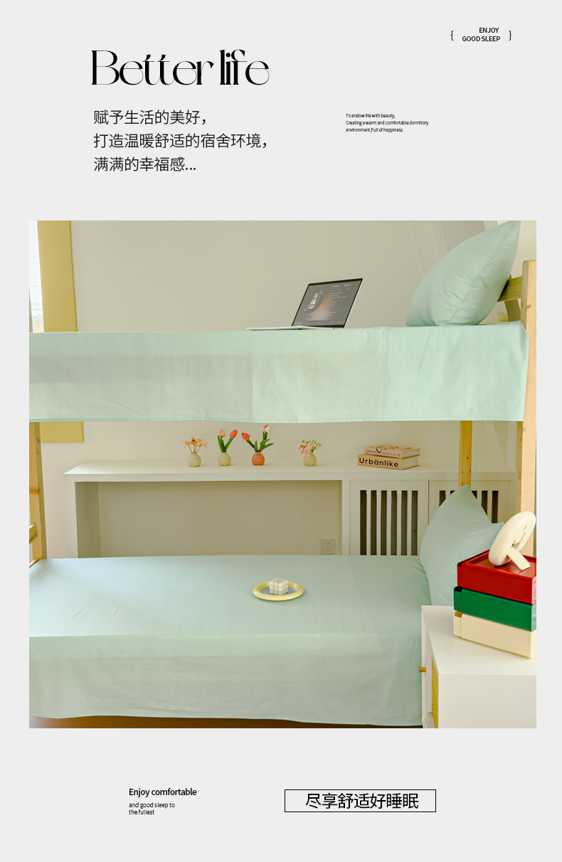 金丝鸟家纺 2024新款A类全棉色织水洗棉单床单系列(学生床) 果绿