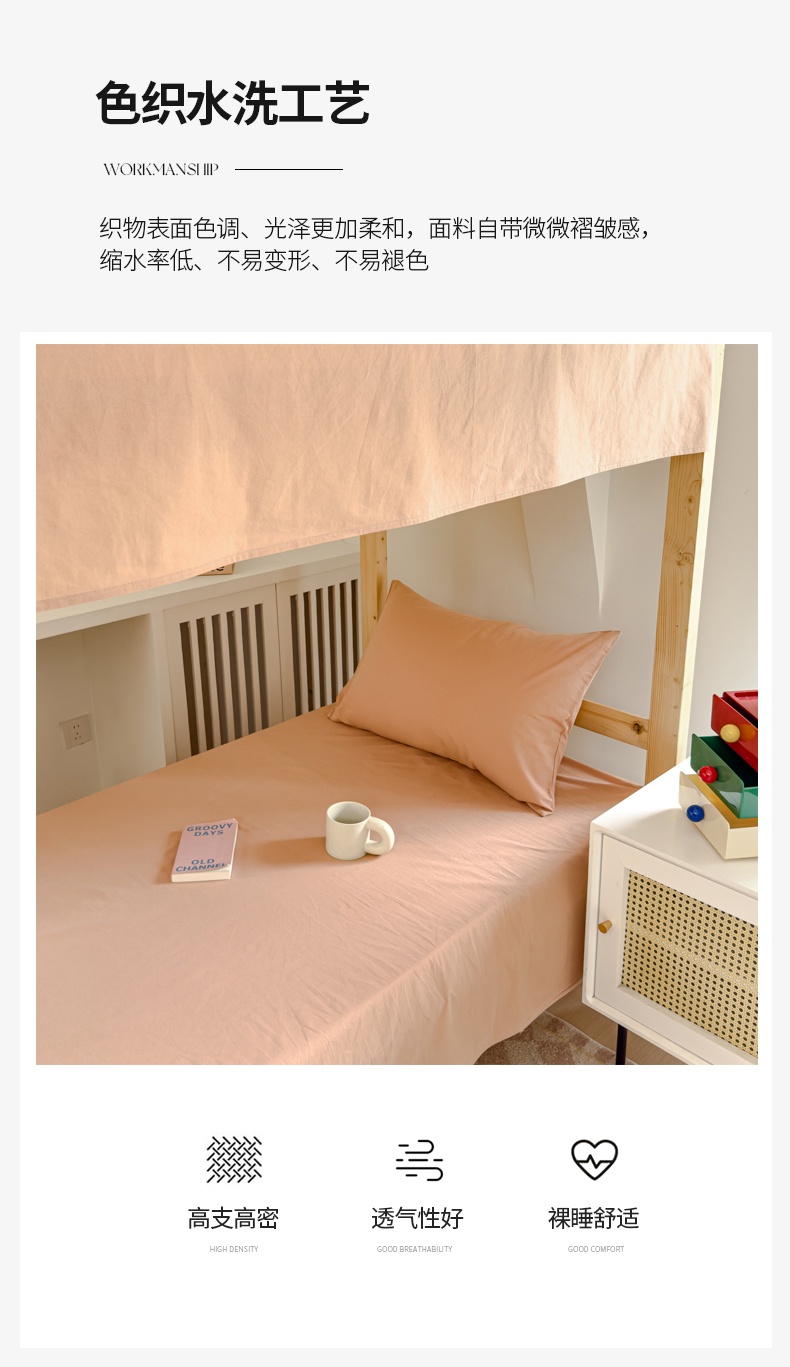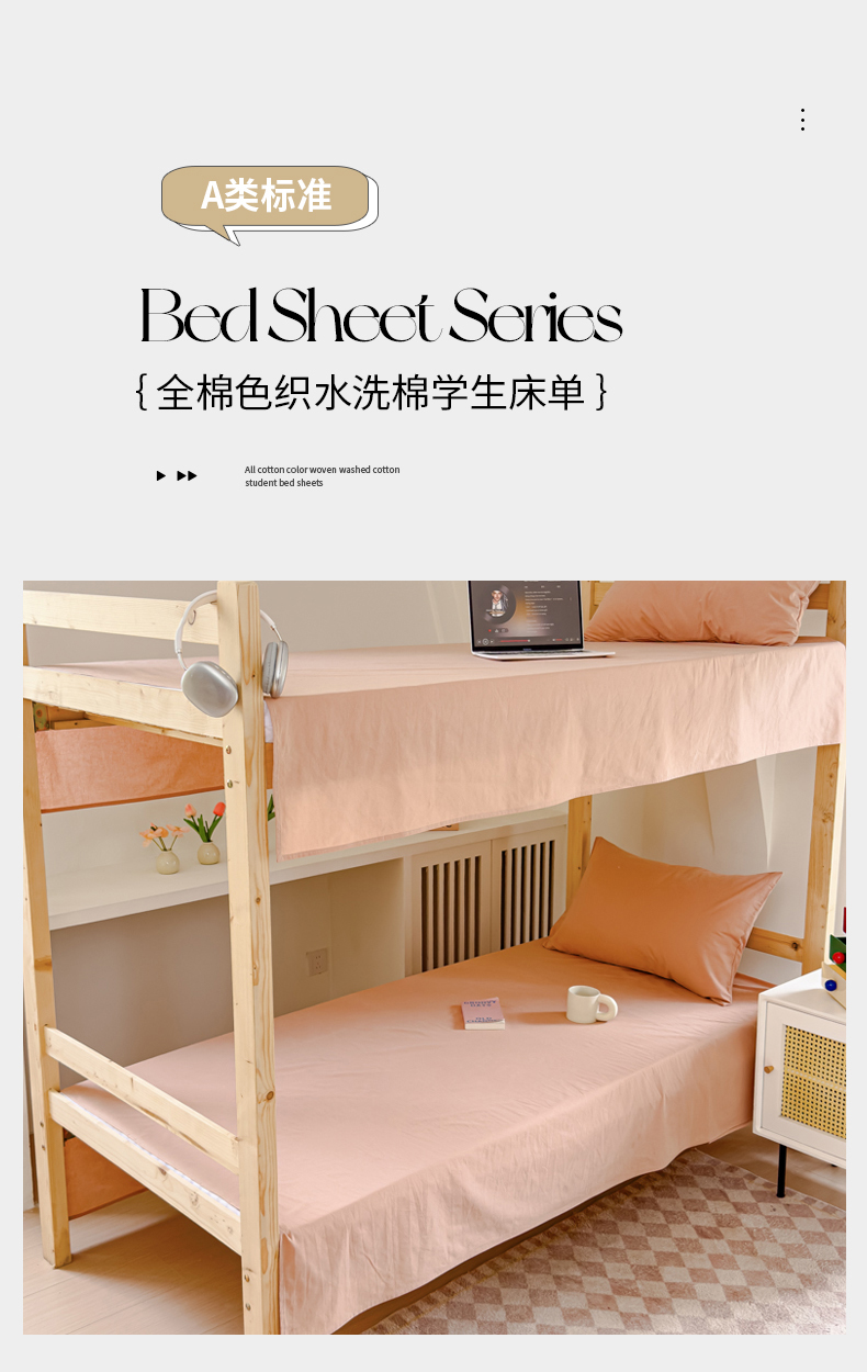 • 91家纺网 家纺一手货源 找家纺 金丝鸟家纺 2024新款A类全棉色织水洗棉单床单系列(学生床) 驼色