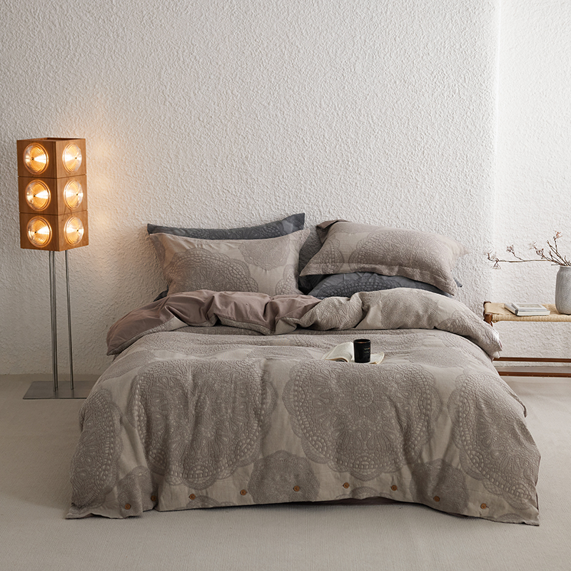 (总)安莱生活 2025春夏新款空气层色织提花四件套南阳假日系列,南阳假日-灰咖,南阳假日-卡其,南阳假日-银灰