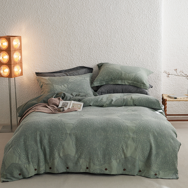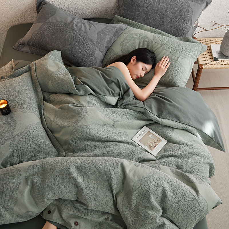(总)安莱生活 2025春夏新款空气层色织提花四件套海盐波点系列,海盐波点-白咖,海盐波点-咖绿,海盐波点-紫灰,海盐波点-棕咖