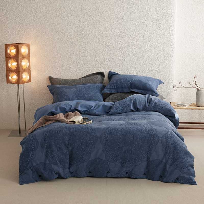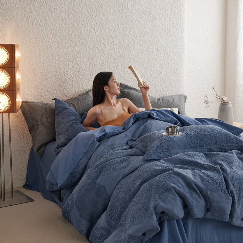 安莱生活 2025新款棉麻纱洗大提花四件套--梦露系列 梦露-深蓝