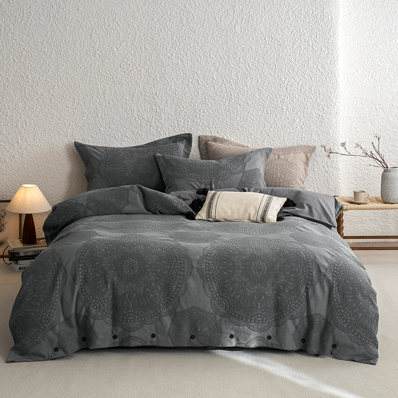 商品名称:安莱生活 2025新款棉麻纱洗大提花四件套--梦露系列 梦露-深蓝