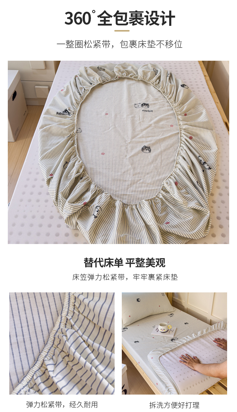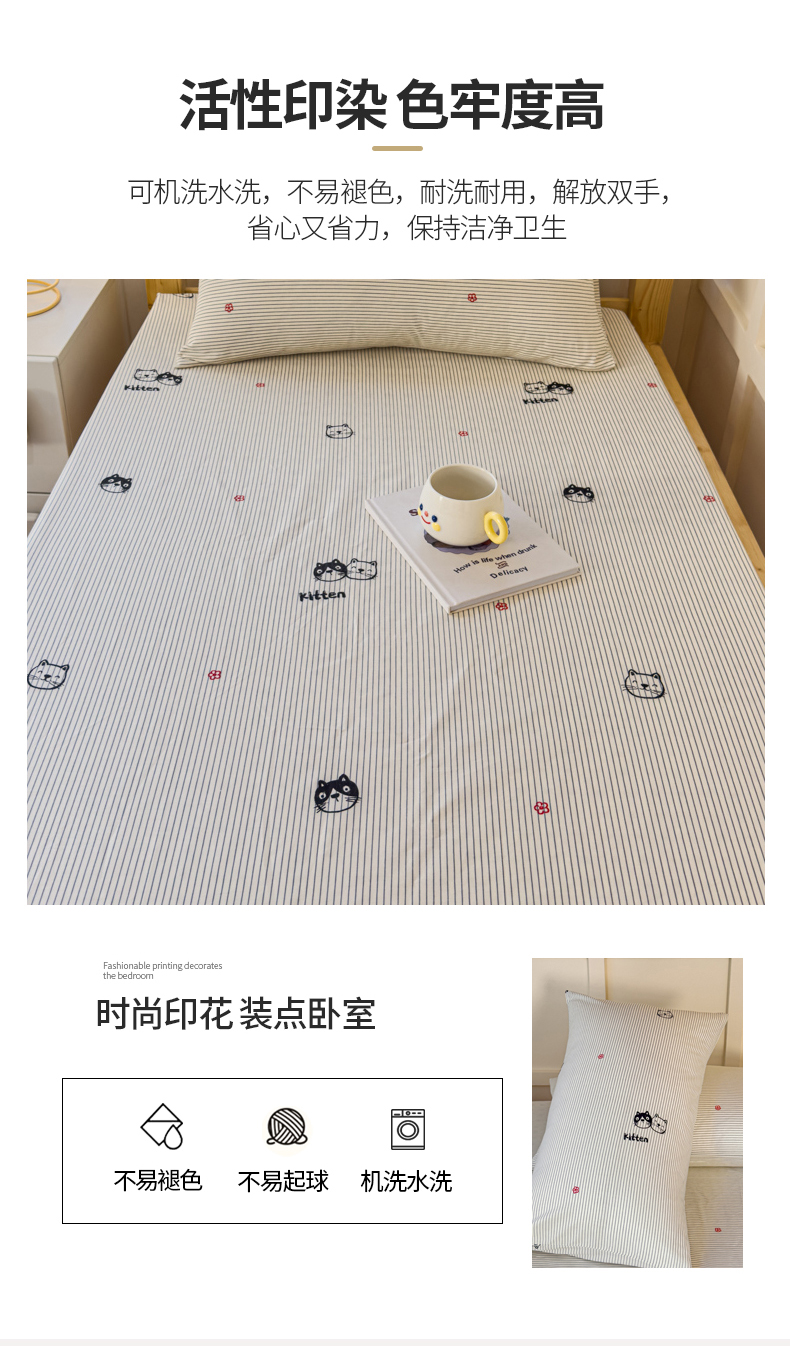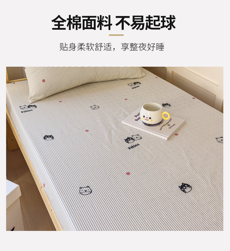 • 91家纺网 家纺一手货源 找家纺 金丝鸟家纺 2024新款全棉小清新印花单床笠系列(学生床) 小萌猫