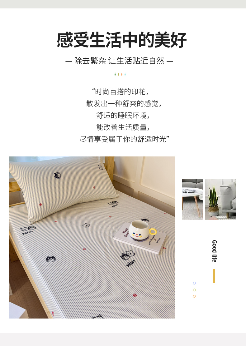 金丝鸟家纺 2024新款全棉小清新印花单床笠系列(学生床) 小萌猫