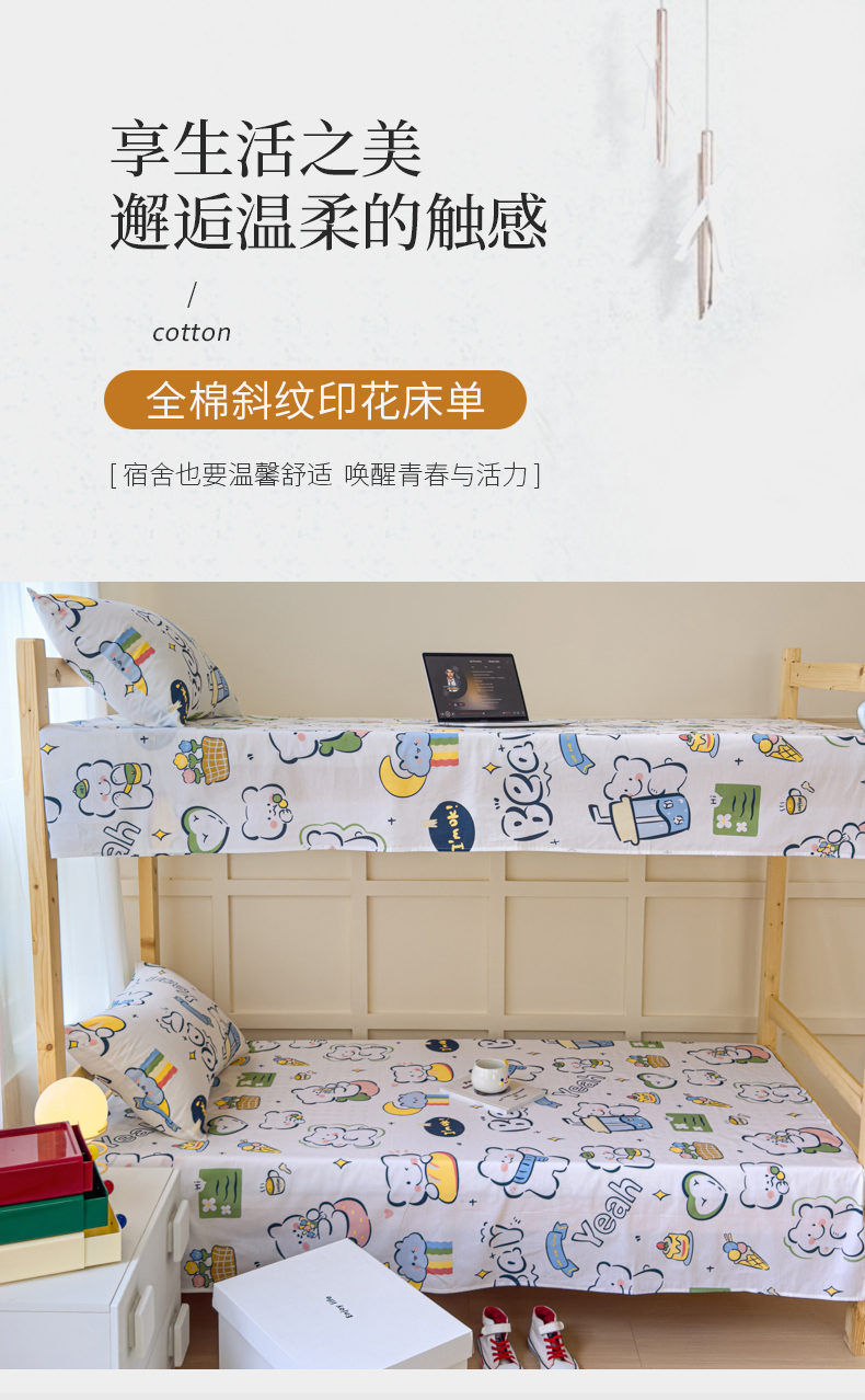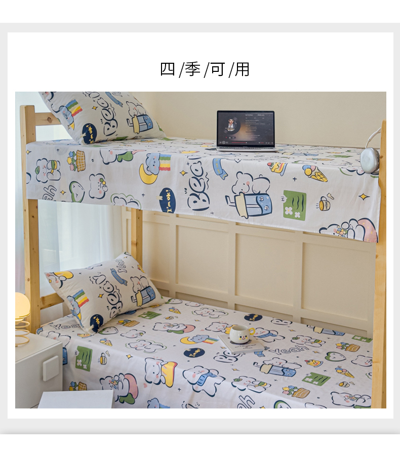 金丝鸟家纺 2024新款全棉小清新印花单床单系列(学生床) 快乐小熊
