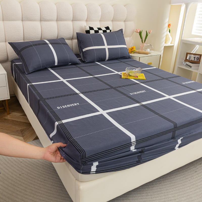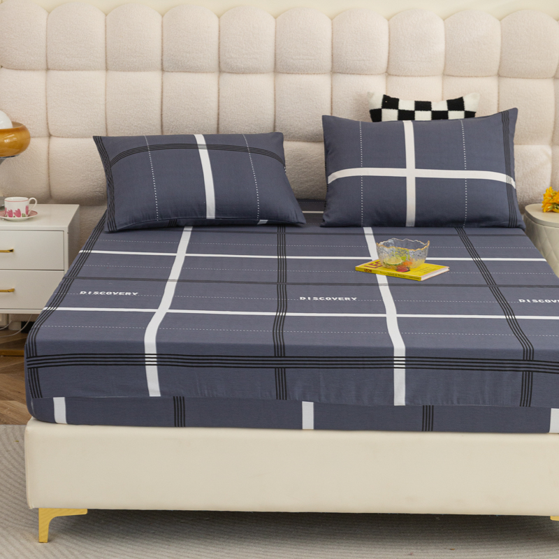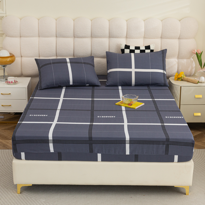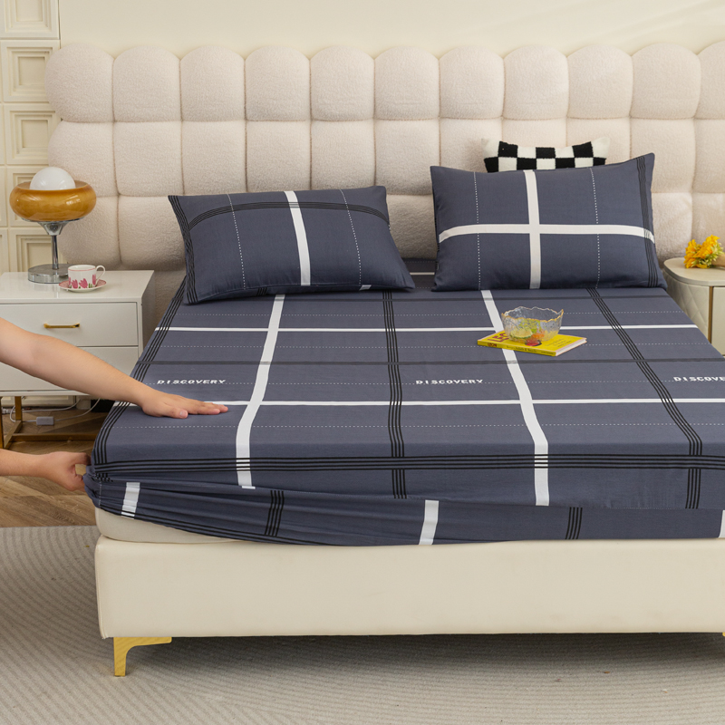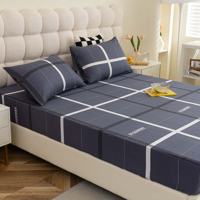 简冠家纺 2025新款纯棉印花床笠 时尚格