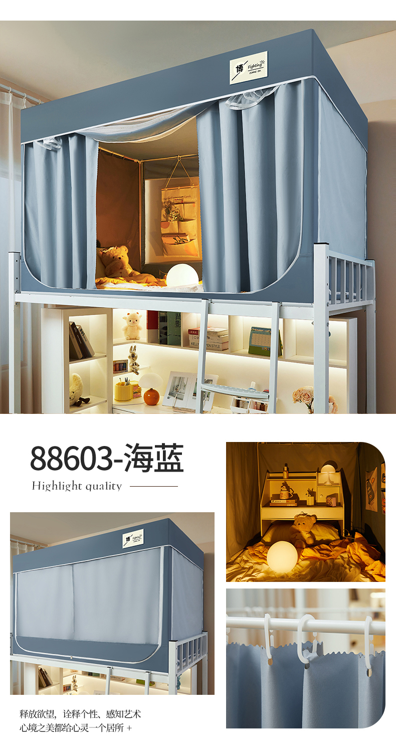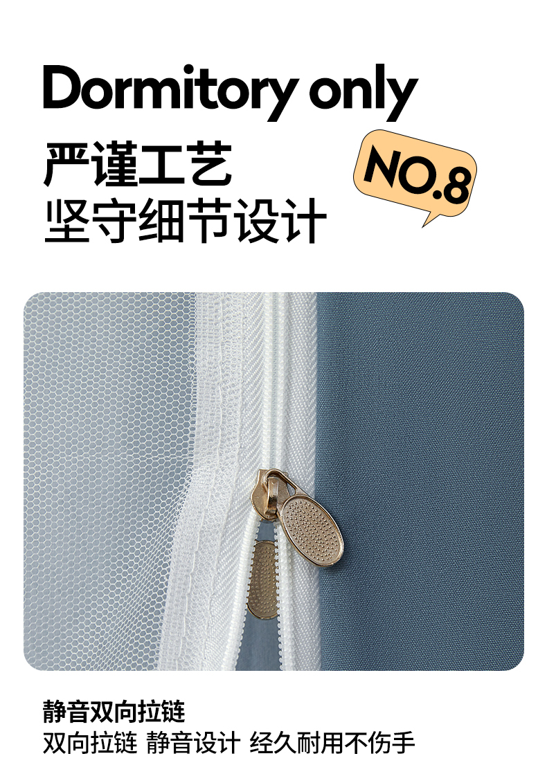 当前位置: 91家纺网 > 商品网购 > 床上用品 > 蚊帐 > 学生蚊帐 > 夏彩 2024学生新款纯色强遮光三开门防蚊防尘强遮光拉链蚊帐-88603 88603-海蓝